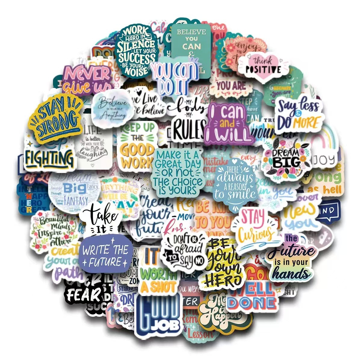 100 다채로운 영감 스티커 영어 문구 낙서 장식 노트북 가방 DIY 방수 국경 도매