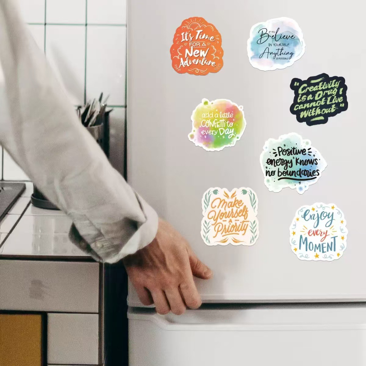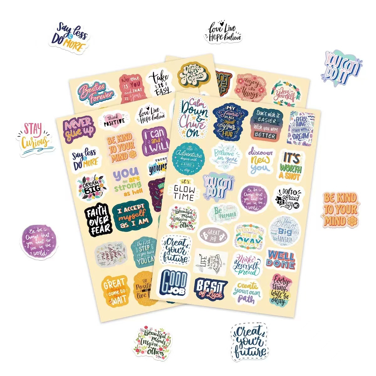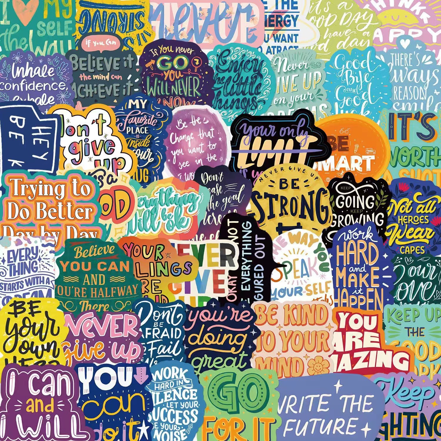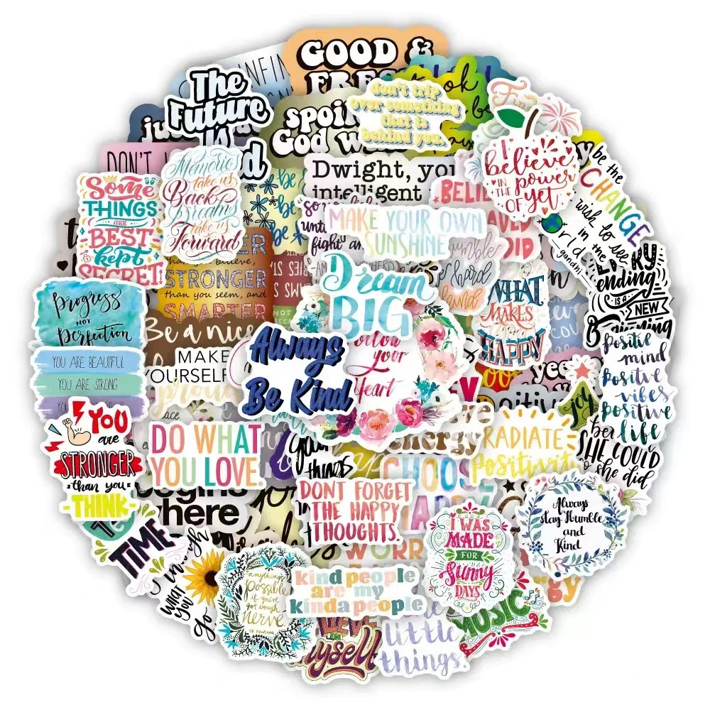 100 다채로운 영감 스티커 영어 문구 낙서 장식 노트북 가방 DIY 방수 국경 도매스토어 가기