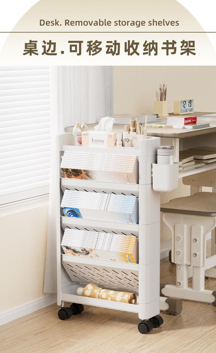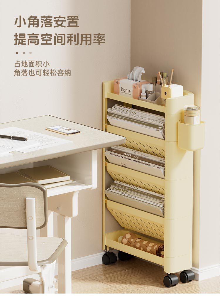 기숙사 보관 트롤리 다층 보관 선반 침실 스낵 테이블 아래 스타일 바닥 테이블 책장 이동식