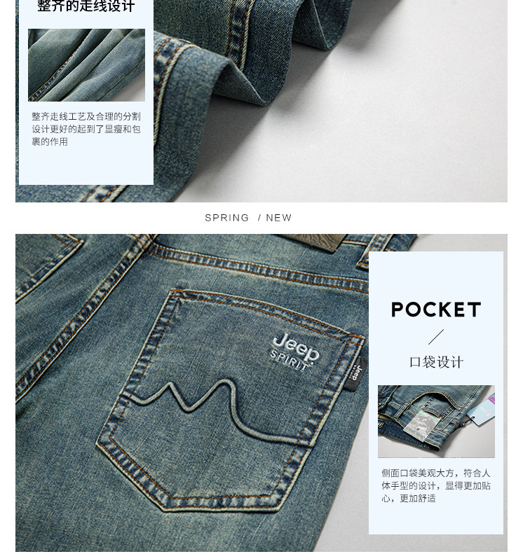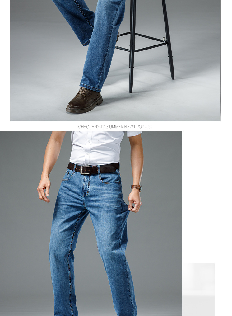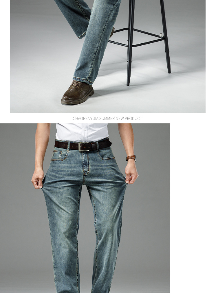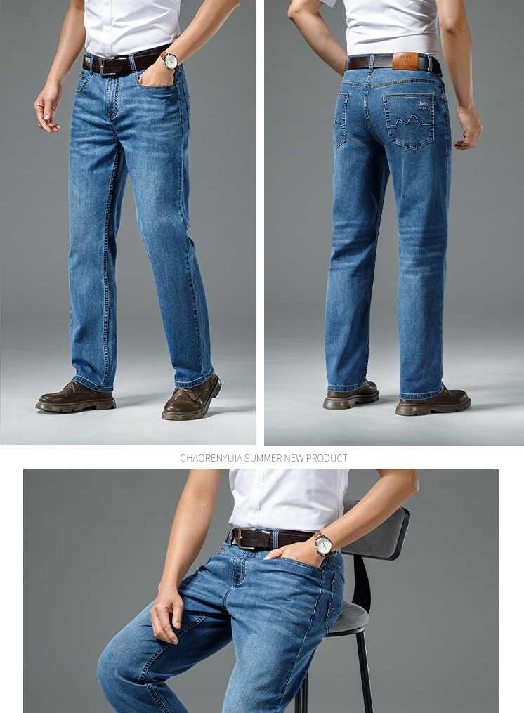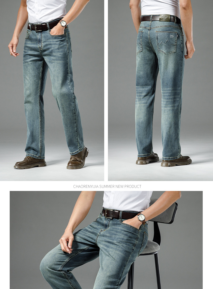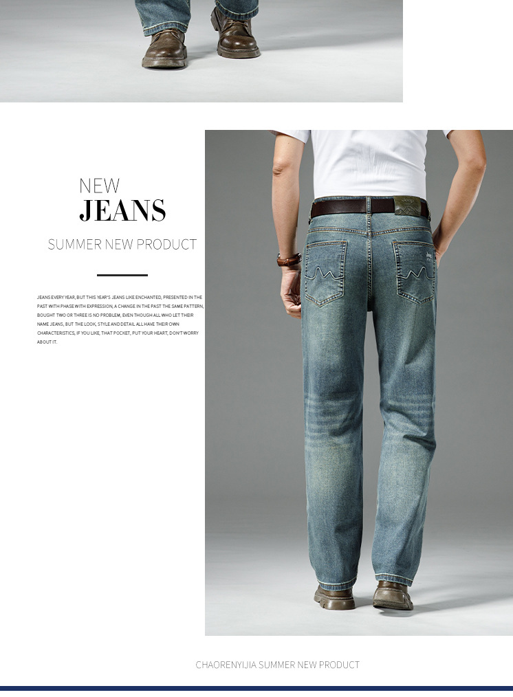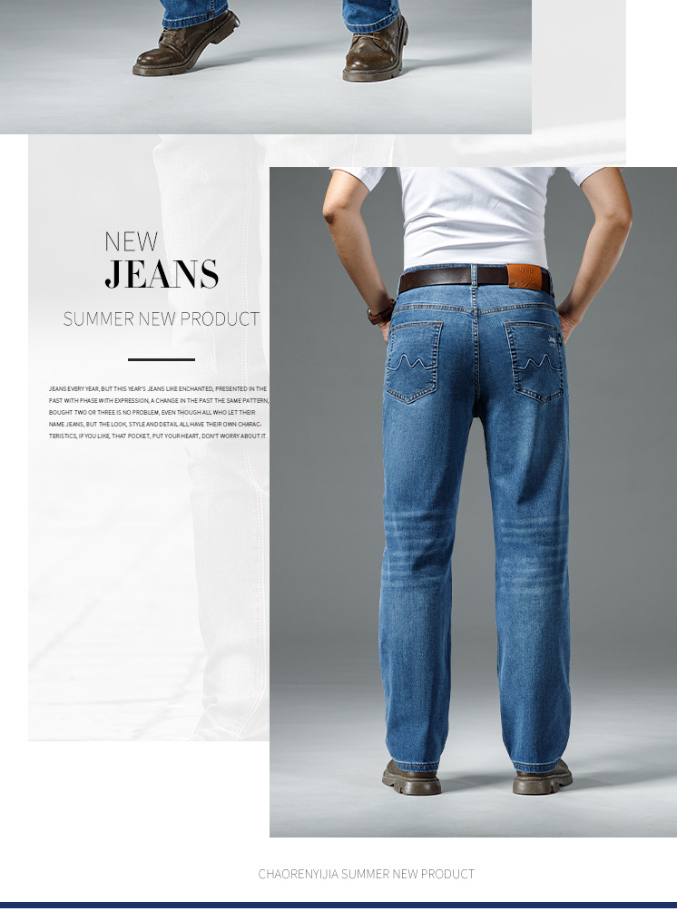 봄 여름 신작 남성 청바지 향수 블루 루즈 스트레이트 스트레치 미드 웨이스트 코튼 롱 팬츠 자수 얇은 3008스토어 가기