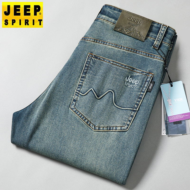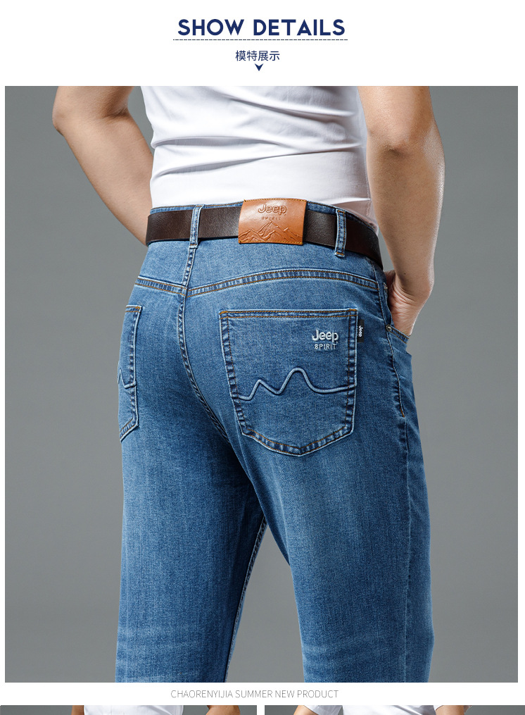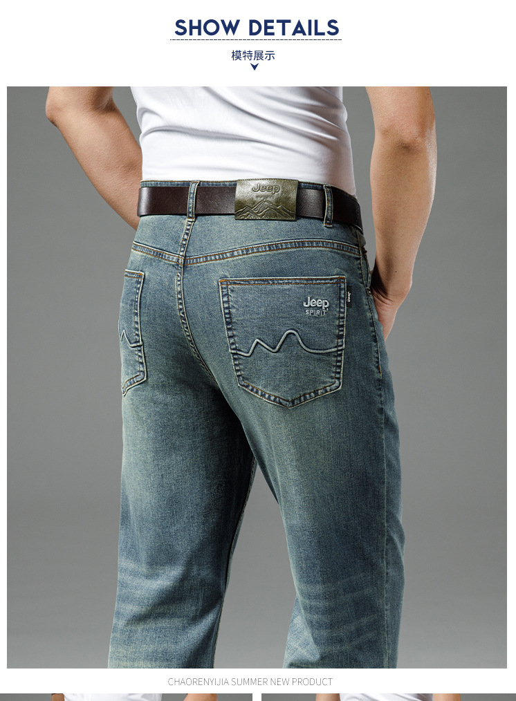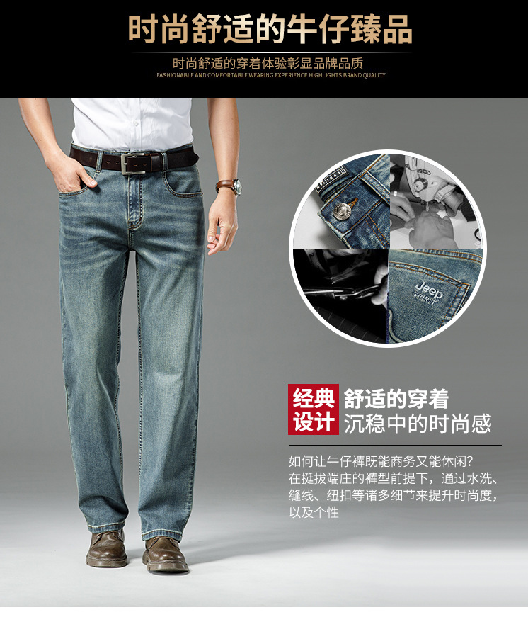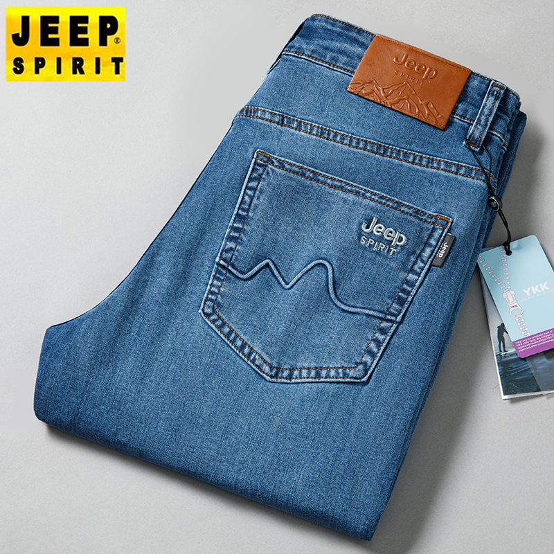 봄 여름 신작 남성 청바지 향수 블루 루즈 스트레이트 스트레치 미드 웨이스트 코튼 롱 팬츠 자수 얇은 3008