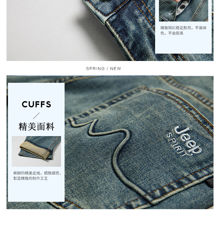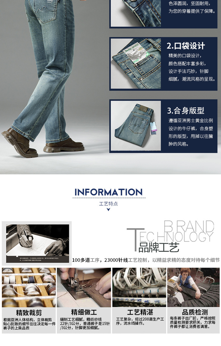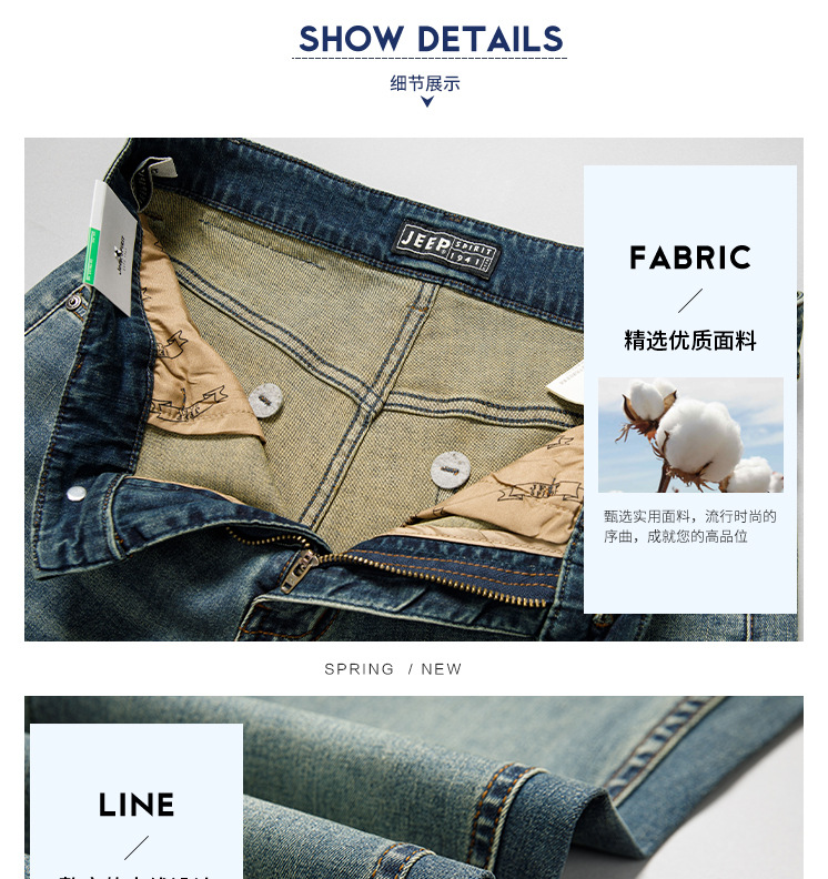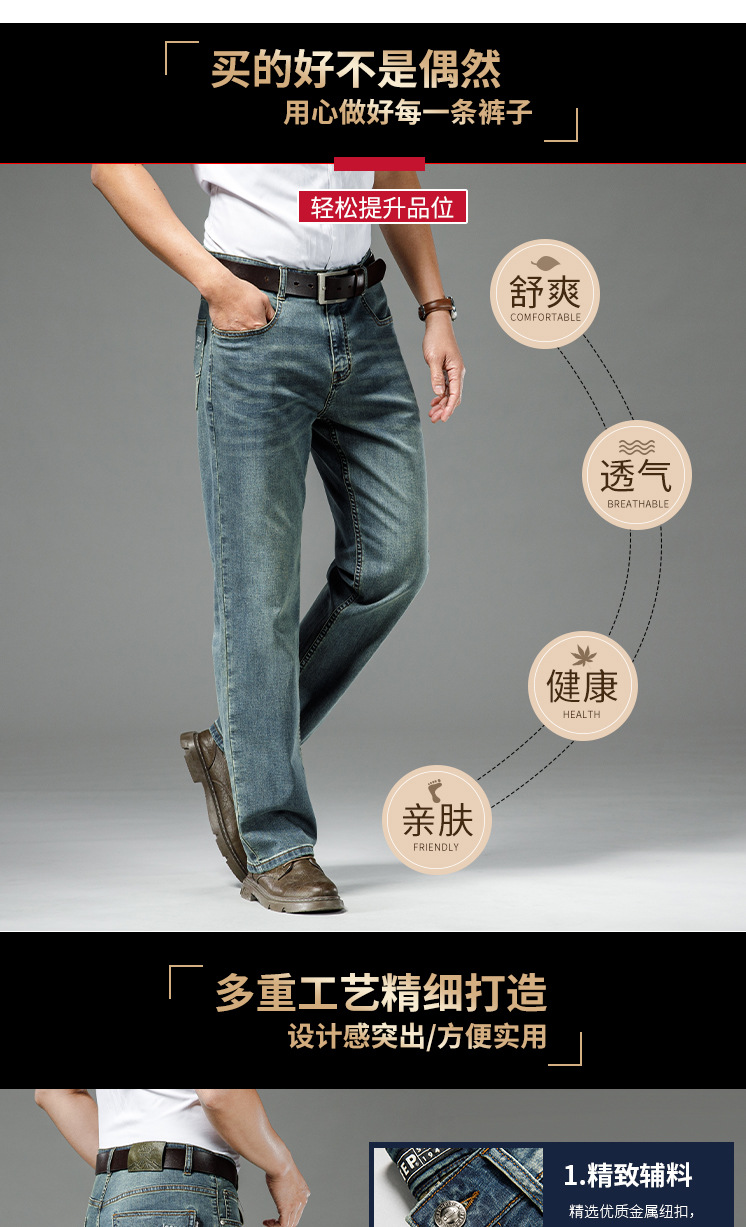 봄 여름 신작 남성 청바지 향수 블루 루즈 스트레이트 스트레치 미드 웨이스트 코튼 롱 팬츠 자수 얇은 3008