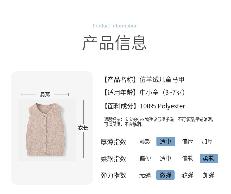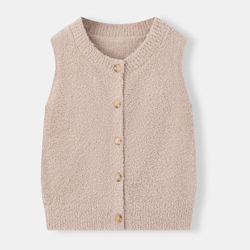 한국식 심플 솔리드 컬러 싱글 브레스트 소프트 왁시 니트 조끼 가디건 가을, 겨울 소년 소녀 민소매 레이어드 조끼