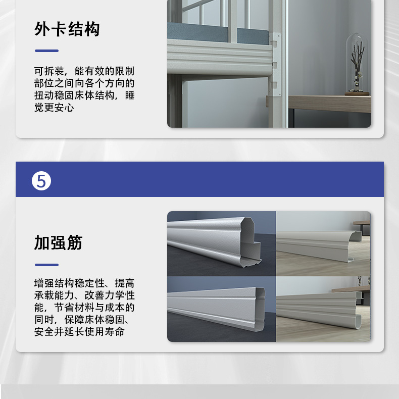 • 특대 탄소강 이중층 무광택 흰색 0.98m 너비 [침대 보드 포함]