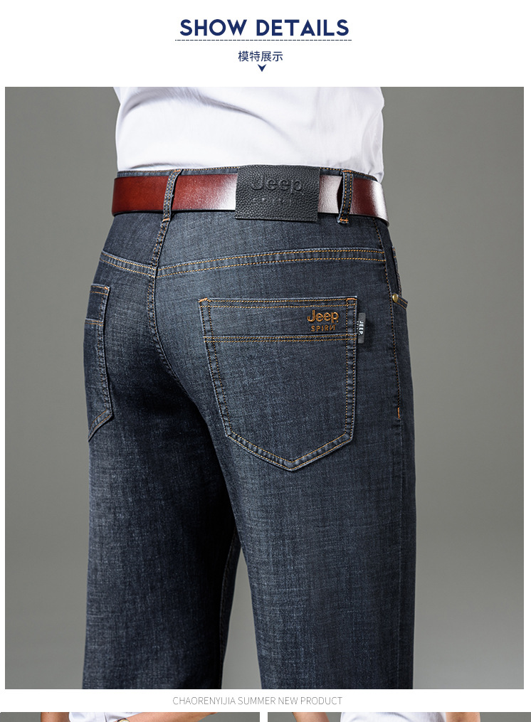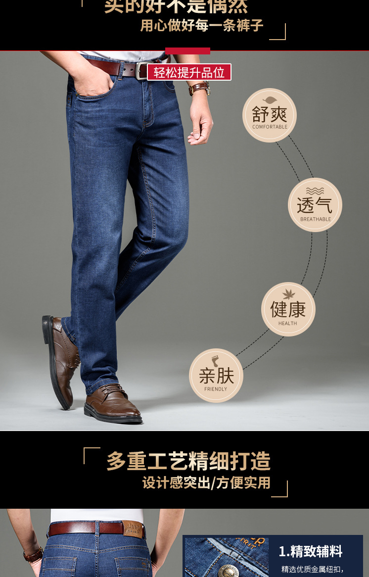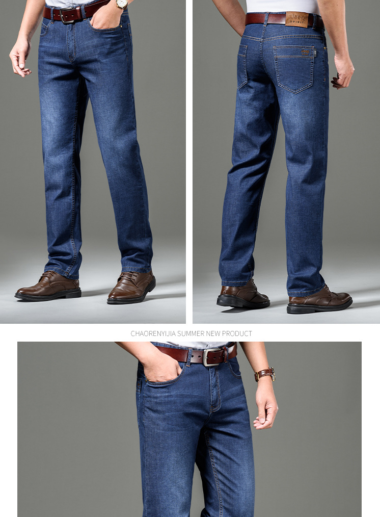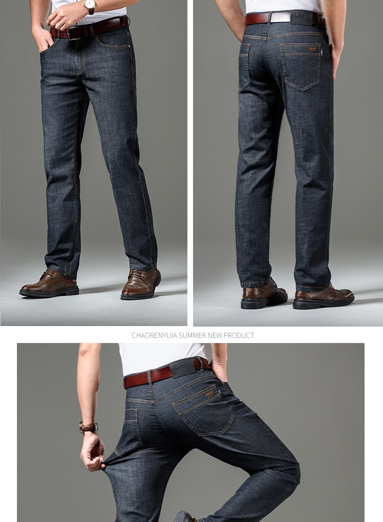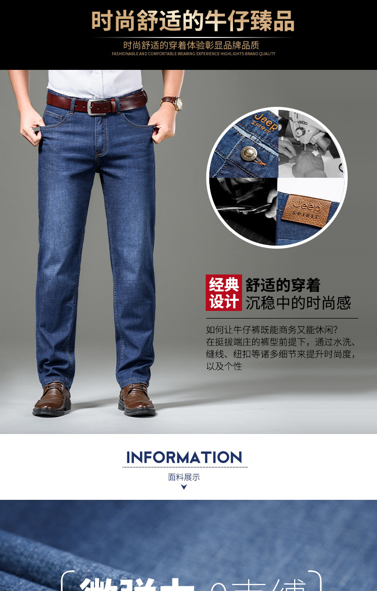 여름 스트레이트 남성 청바지 루즈 비즈니스 캐주얼 스트레치 미드 웨이스트 바지 다목적 얇은 J9011스토어 가기