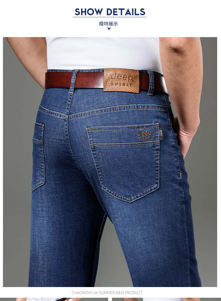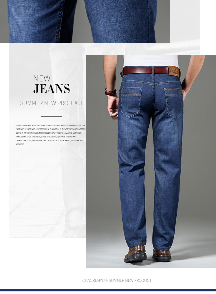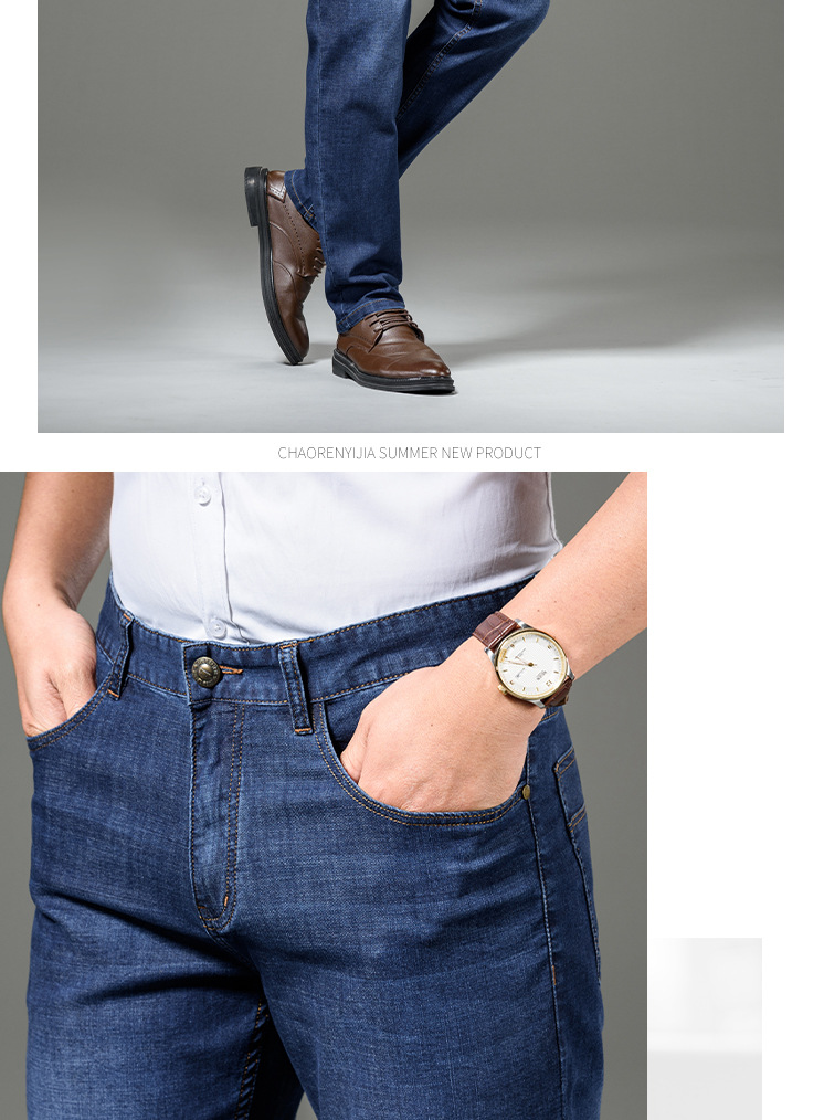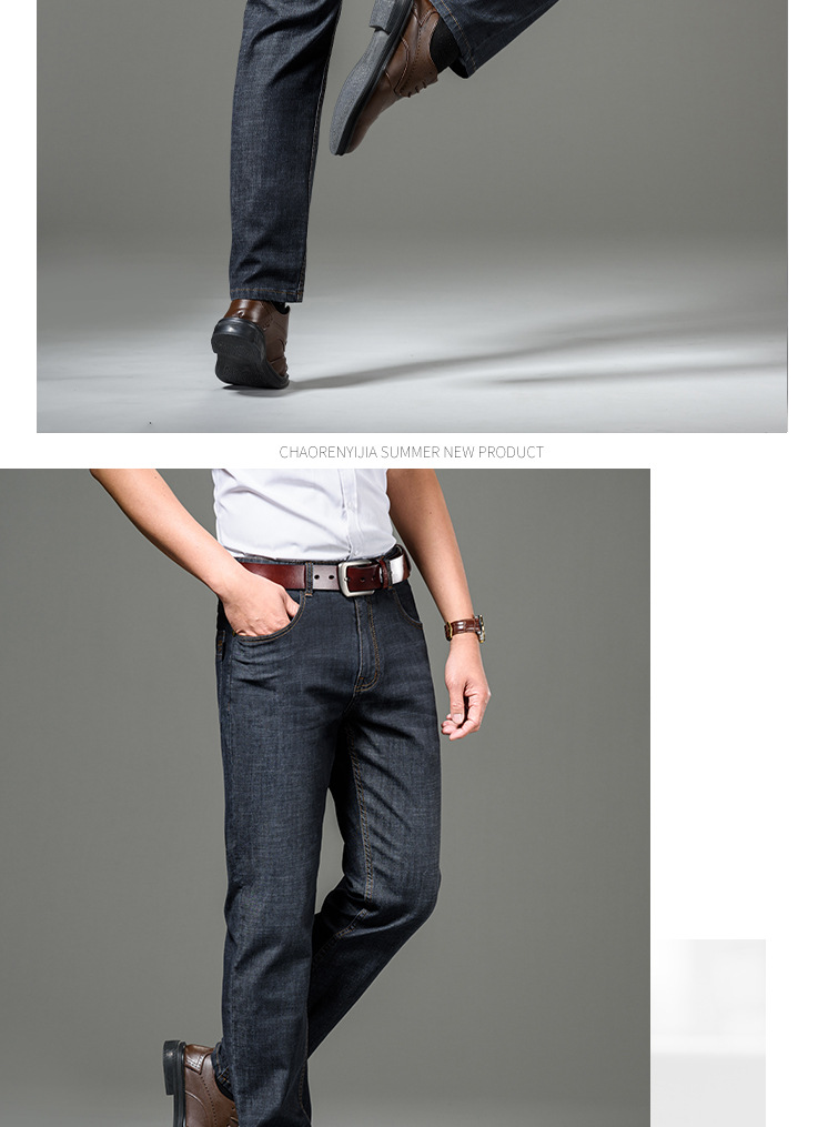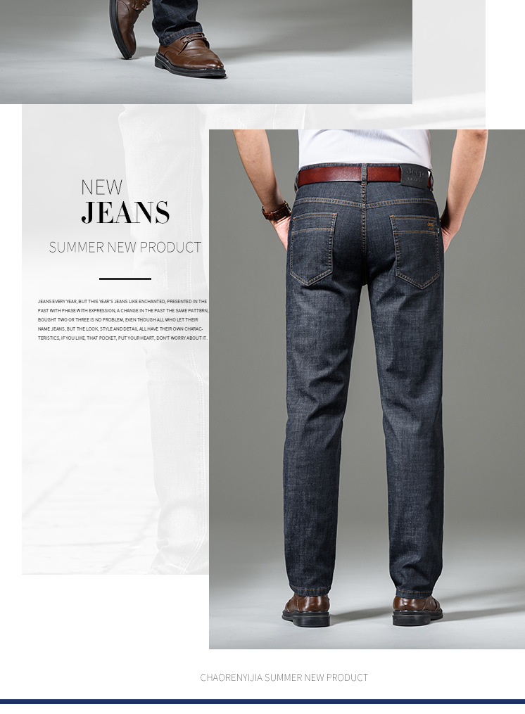 여름 스트레이트 남성 청바지 루즈 비즈니스 캐주얼 스트레치 미드 웨이스트 바지 다목적 얇은 J9011스토어 가기