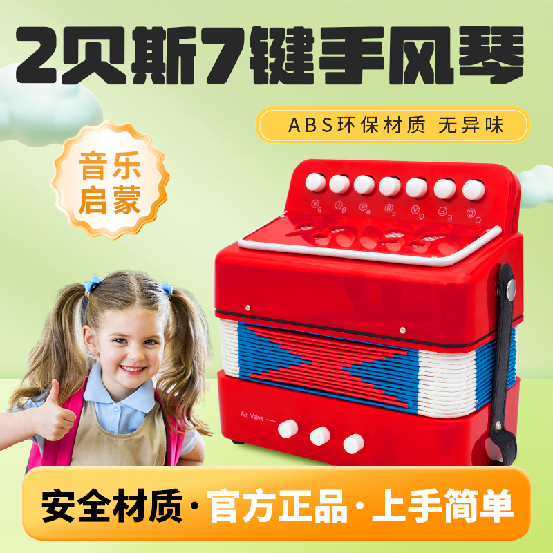 7키 2베이스 어린이용 아코디언 성인 초보자용 초급 악기 장난감 음악 교육용 어린이용 모델