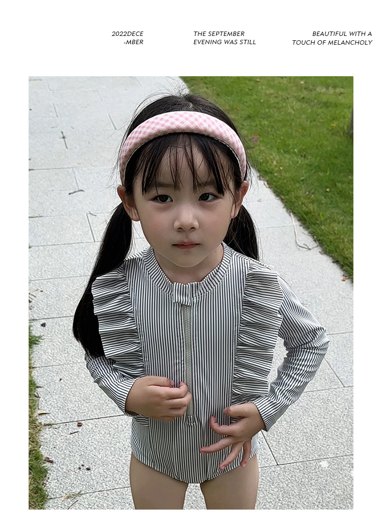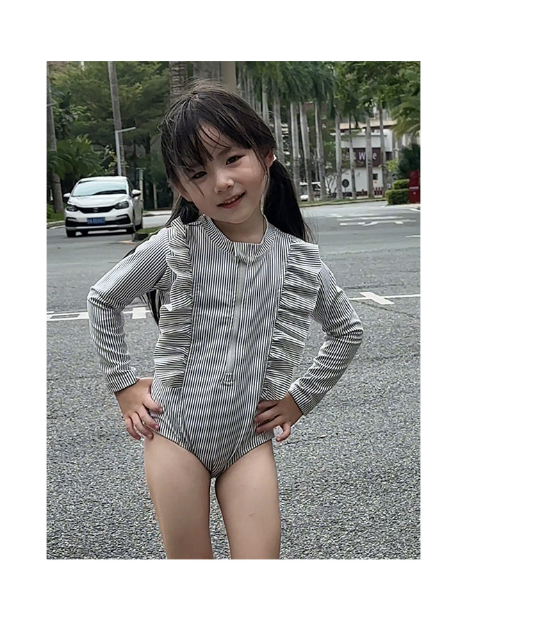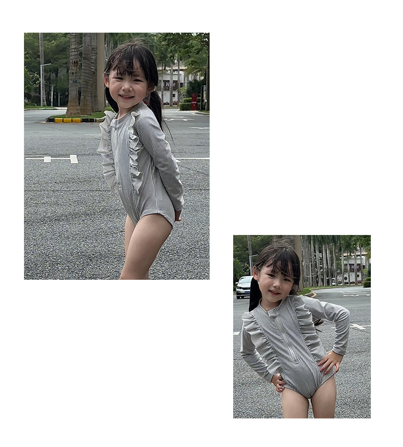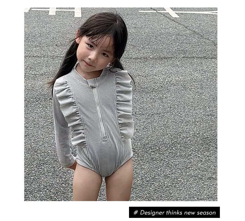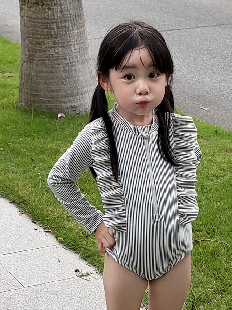 2025 새로운 소녀 아기 소녀 그레이 러플 수영복 소녀 여름 서양식 수영복