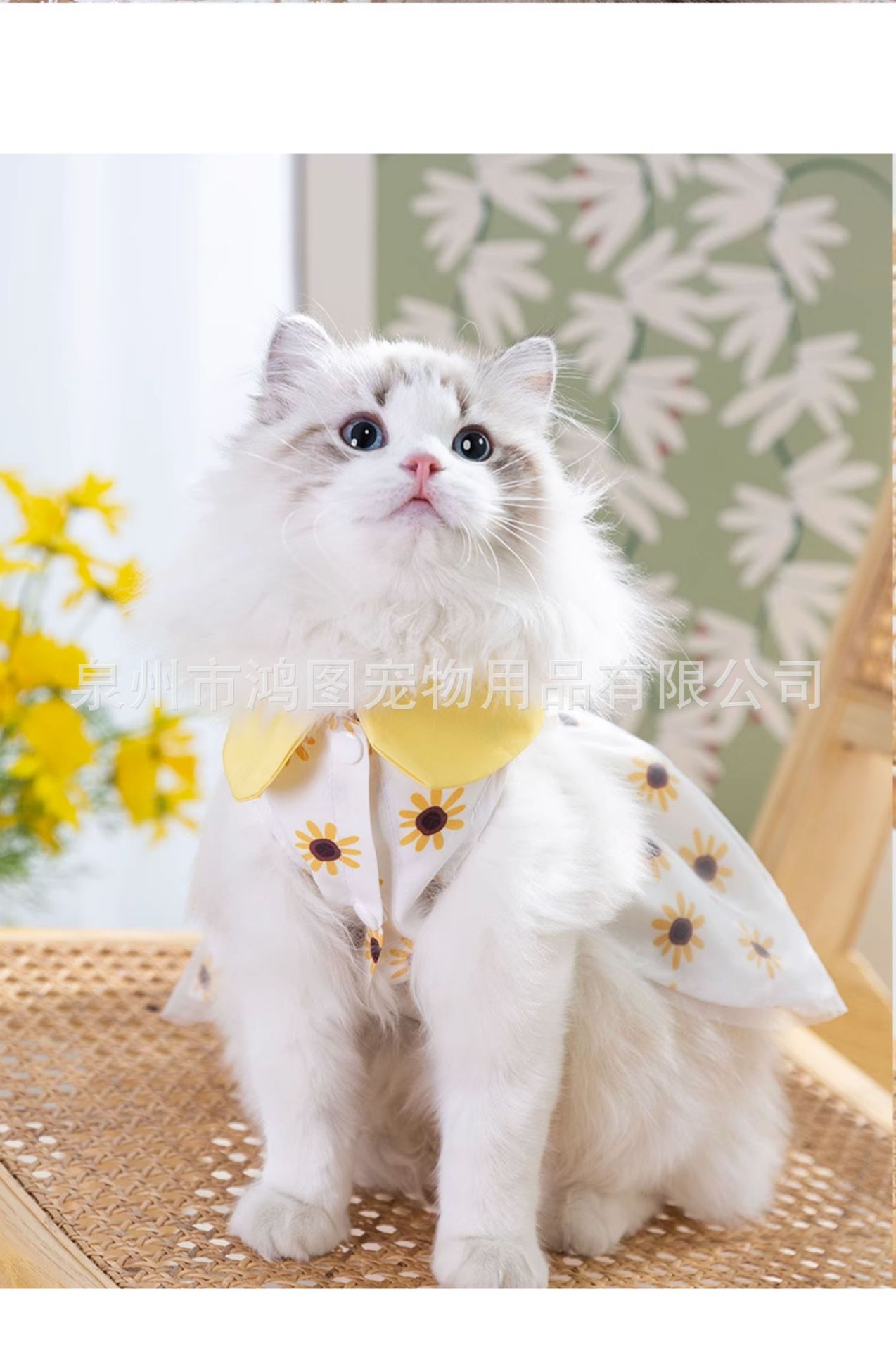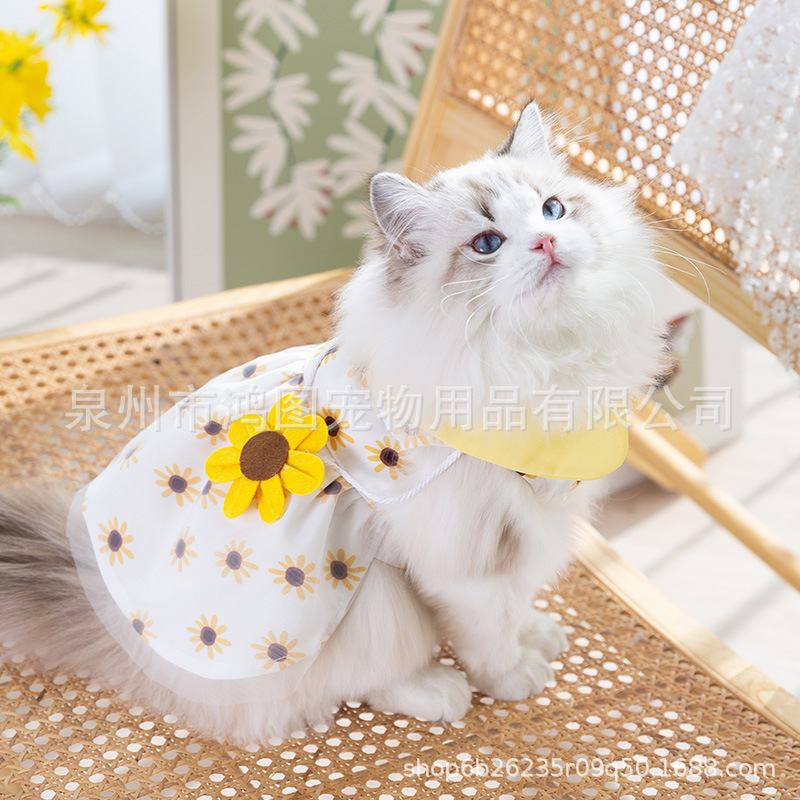 국경 간 여름 고양이 애완 동물 의류 개 해바라기 스커트 고양이와 개 옷 태양 꽃 숄더백 드레스