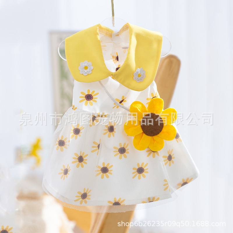 국경 간 여름 고양이 애완 동물 의류 개 해바라기 스커트 고양이와 개 옷 태양 꽃 숄더백 드레스스토어 가기
