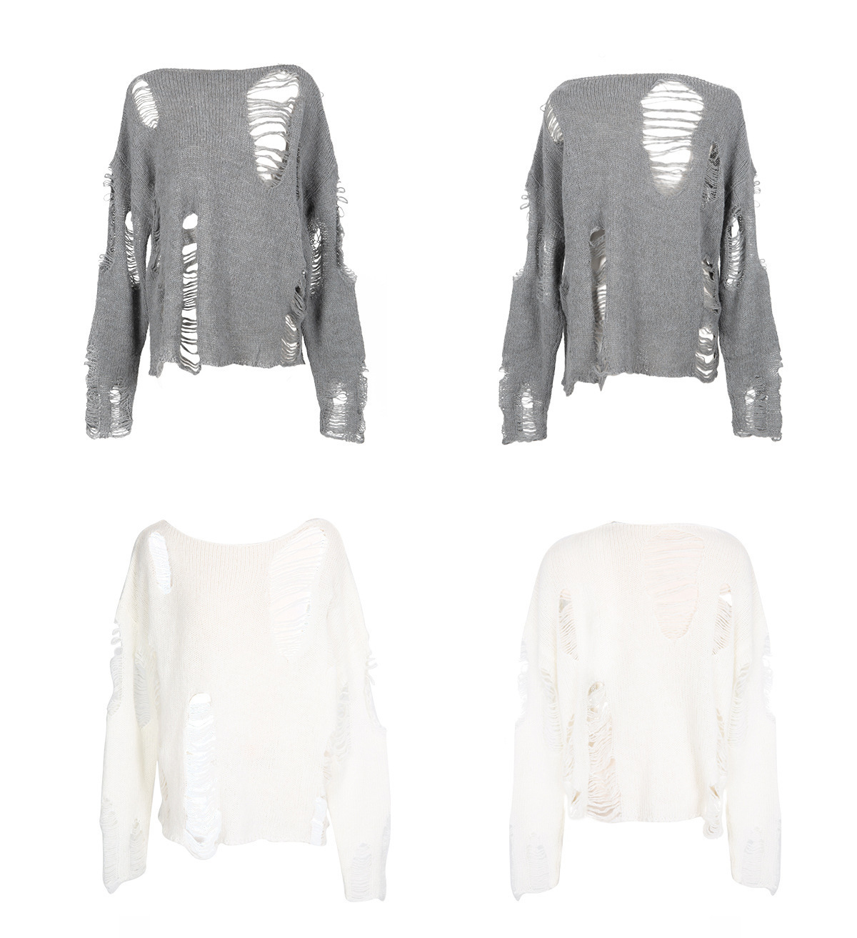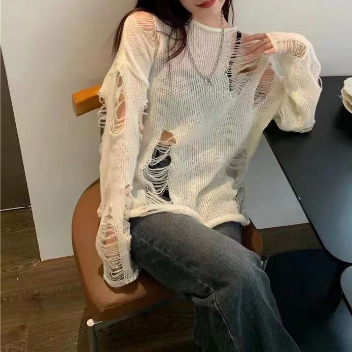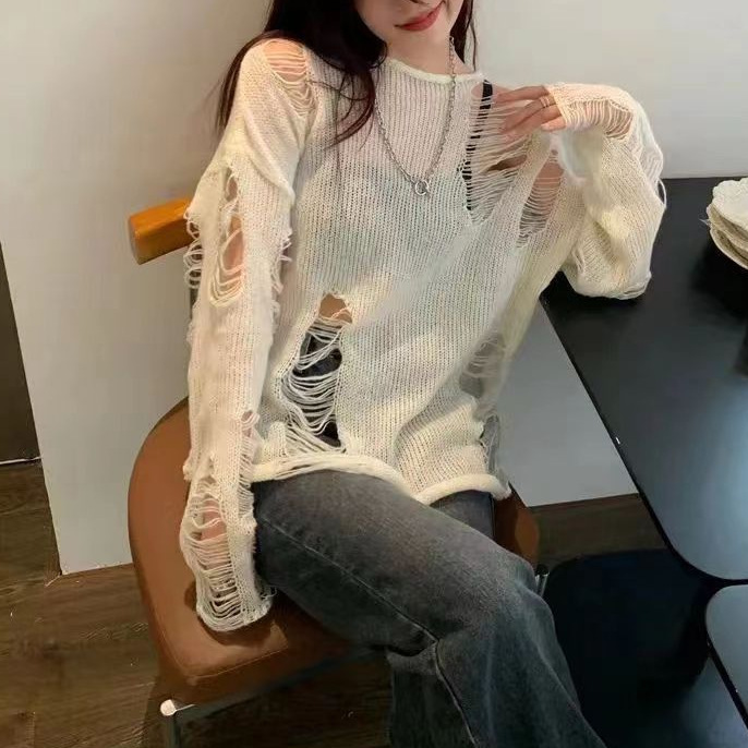 니치 슬로프 숄더 탑 캐주얼 레이지 2025 여름 가을 새로운 한국 스타일 루즈한 스웨터 여성용 찢어진 중공 스웨터스토어 가기