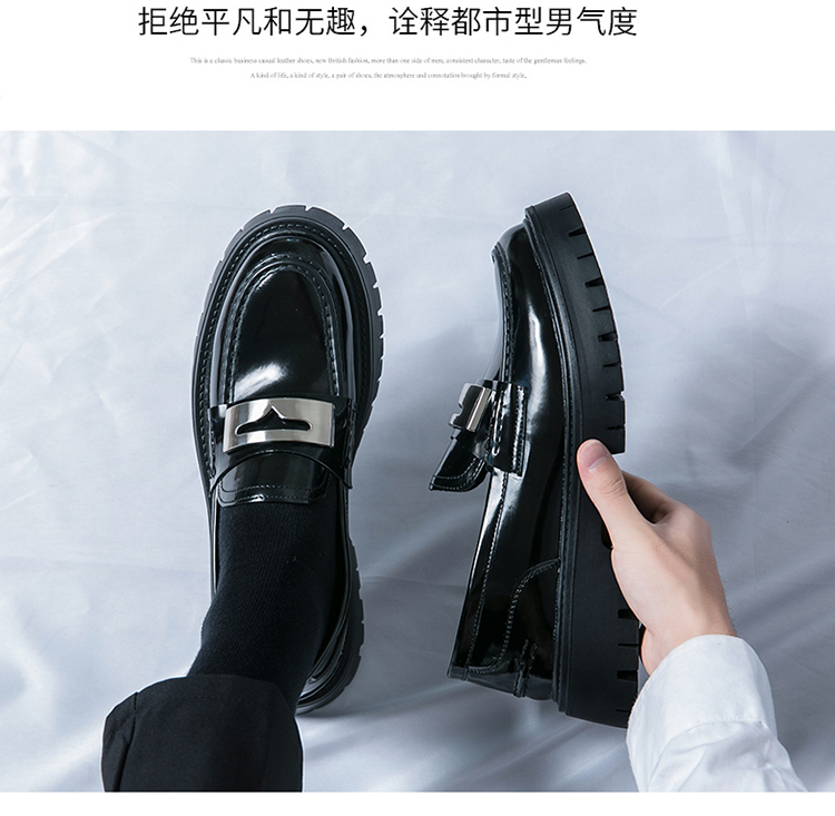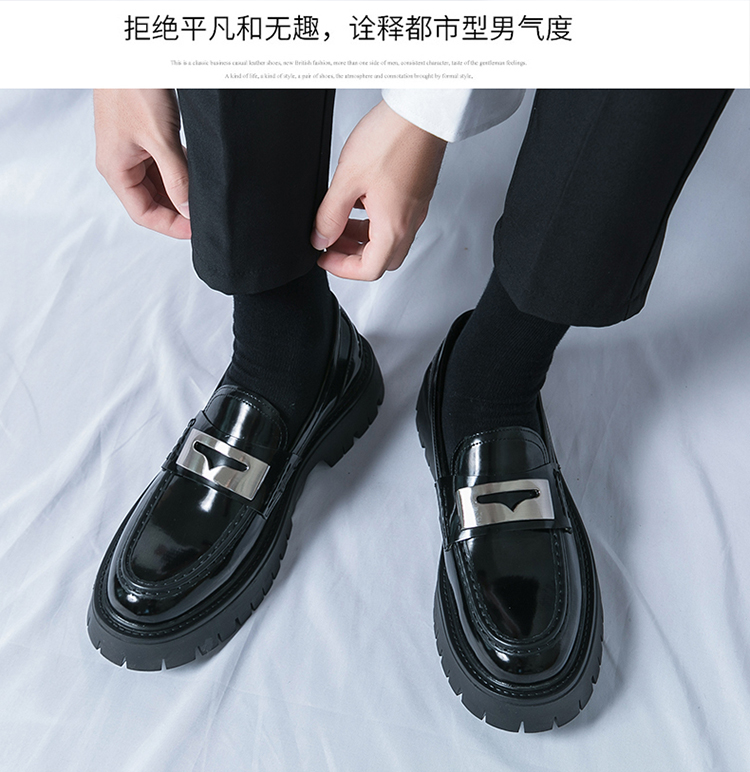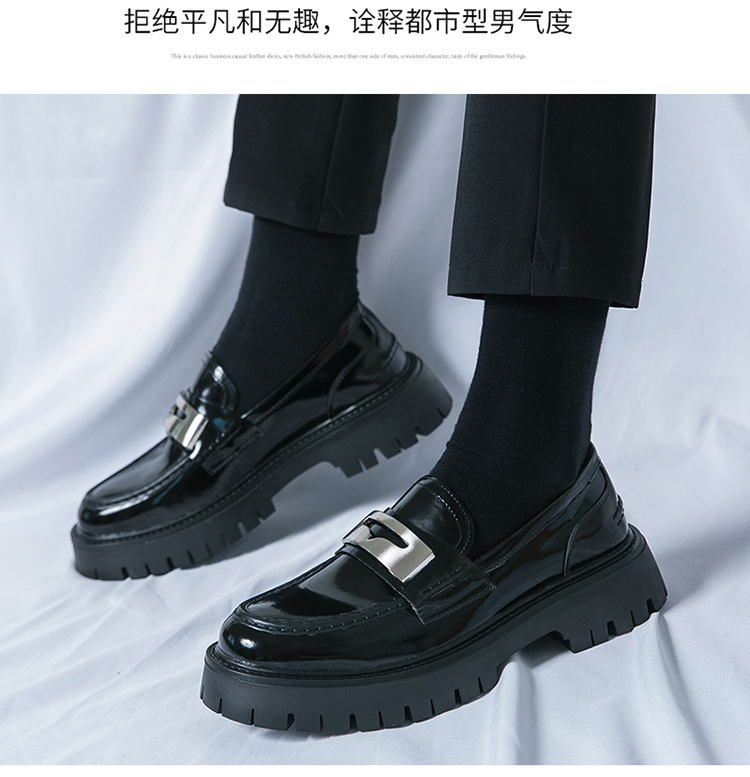 2025년 가을 광택 작은 가죽 신발 남성용 통기성 영국식 두꺼운 밑창 트렌디 슬립온 캐주얼 로퍼스토어 가기