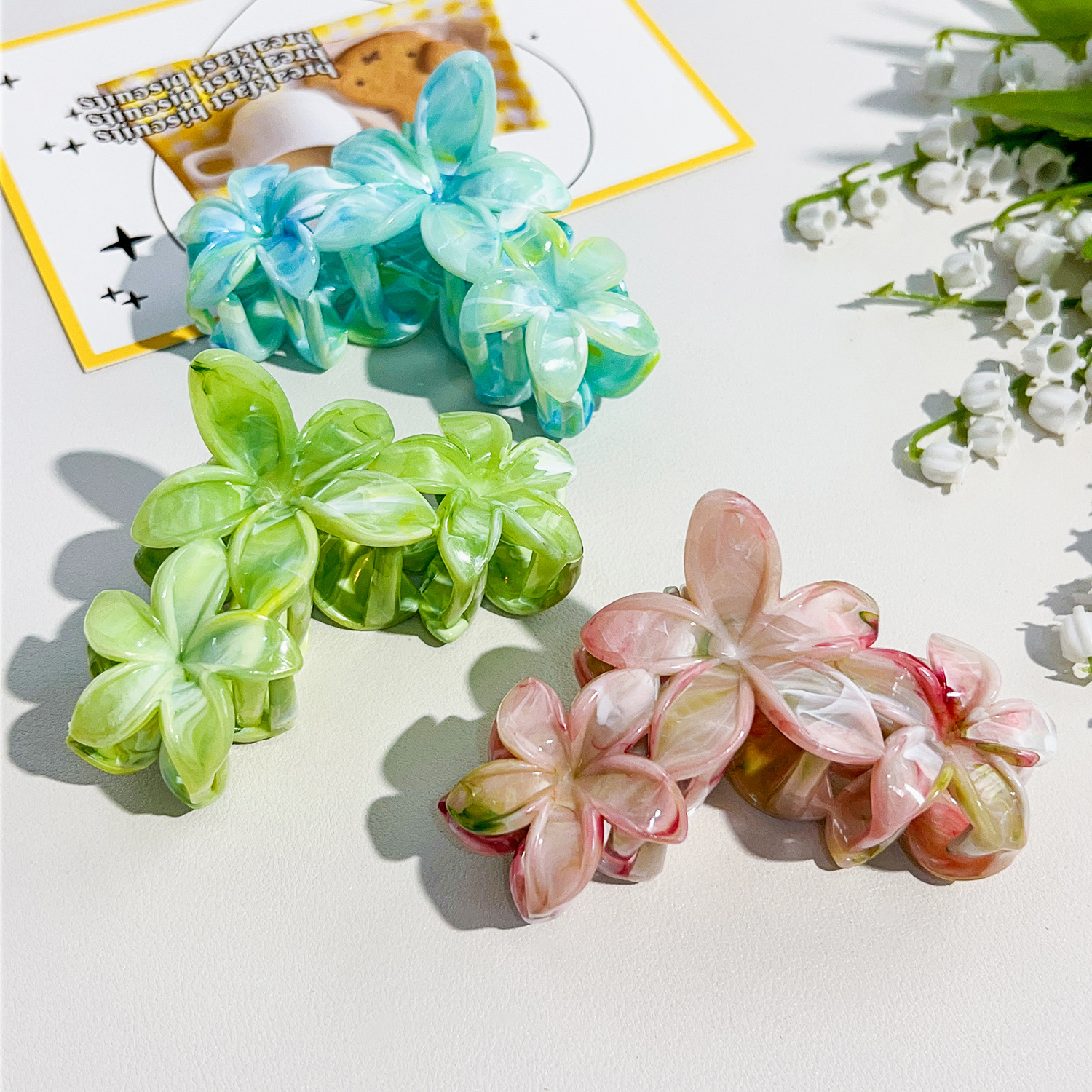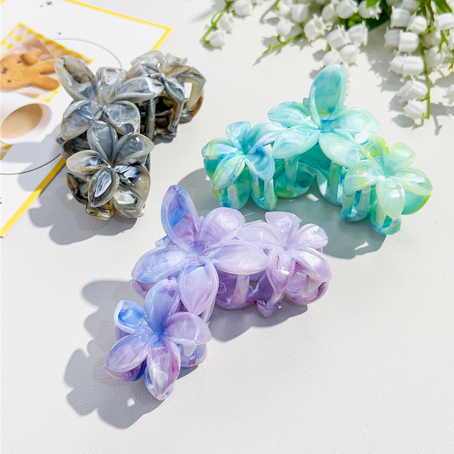 국경 핫 헤어핀 대리석 계란 꽃 잡아 클립 고급 Sizzy 헤어 상어 클립 새로운 헤어 액세서리 도매