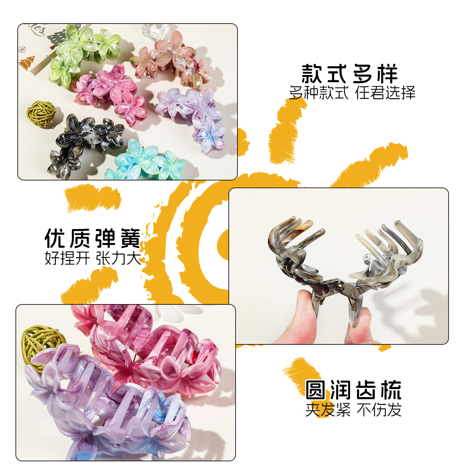 국경 핫 헤어핀 대리석 계란 꽃 잡아 클립 고급 Sizzy 헤어 상어 클립 새로운 헤어 액세서리 도매스토어 가기