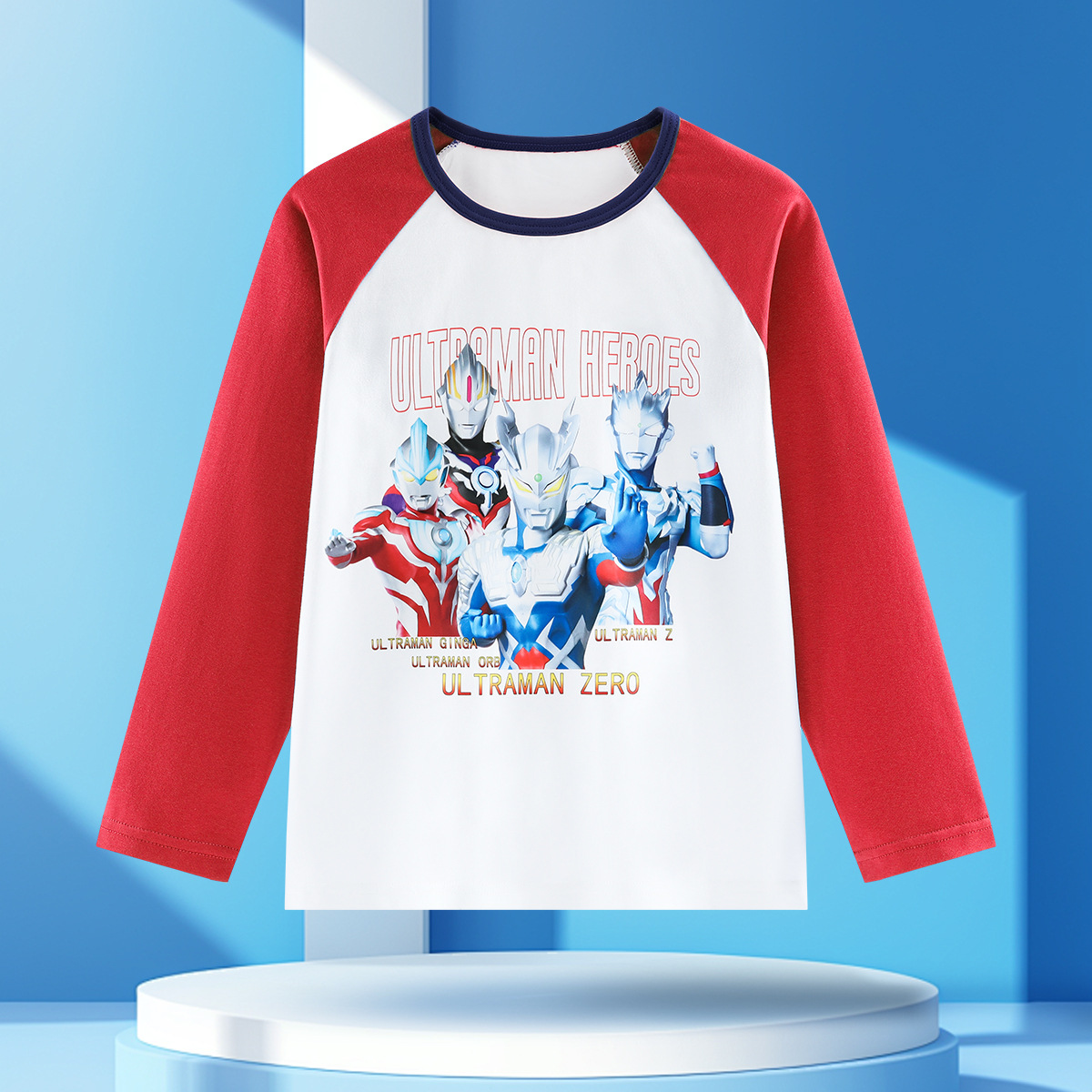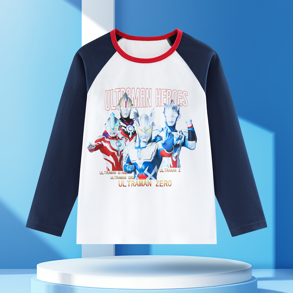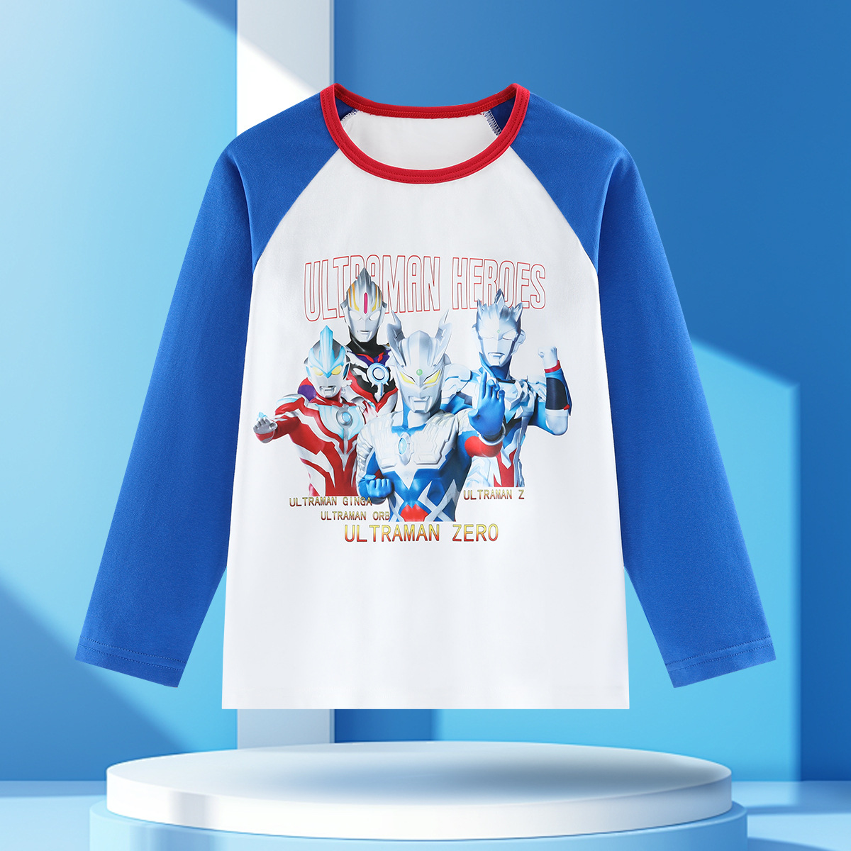 Serozet Combination Boys 순수 코튼 봄, 가을 티셔츠 긴 소매 어린이 만화 프린트 라운드 넥 컬러 블록 코튼 탑