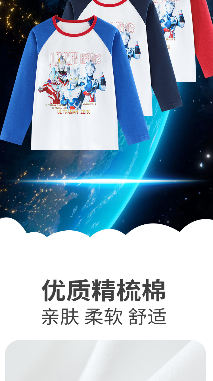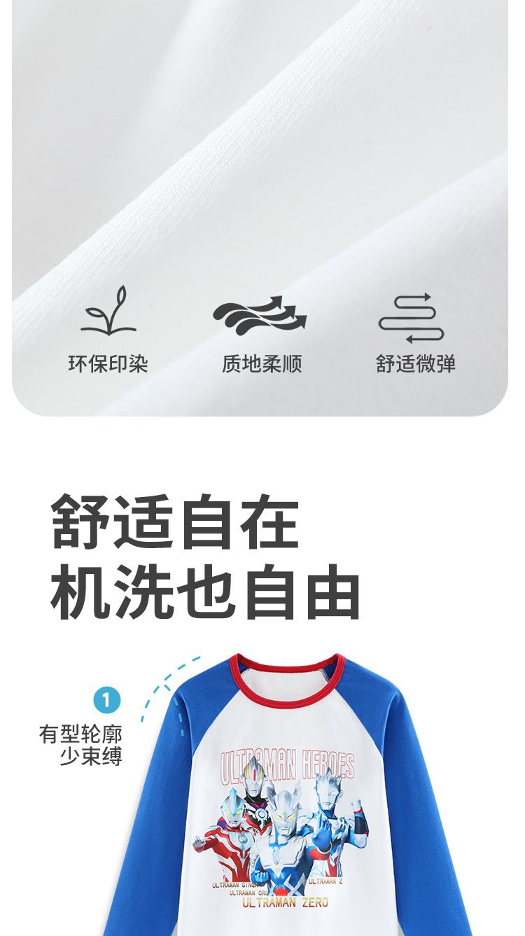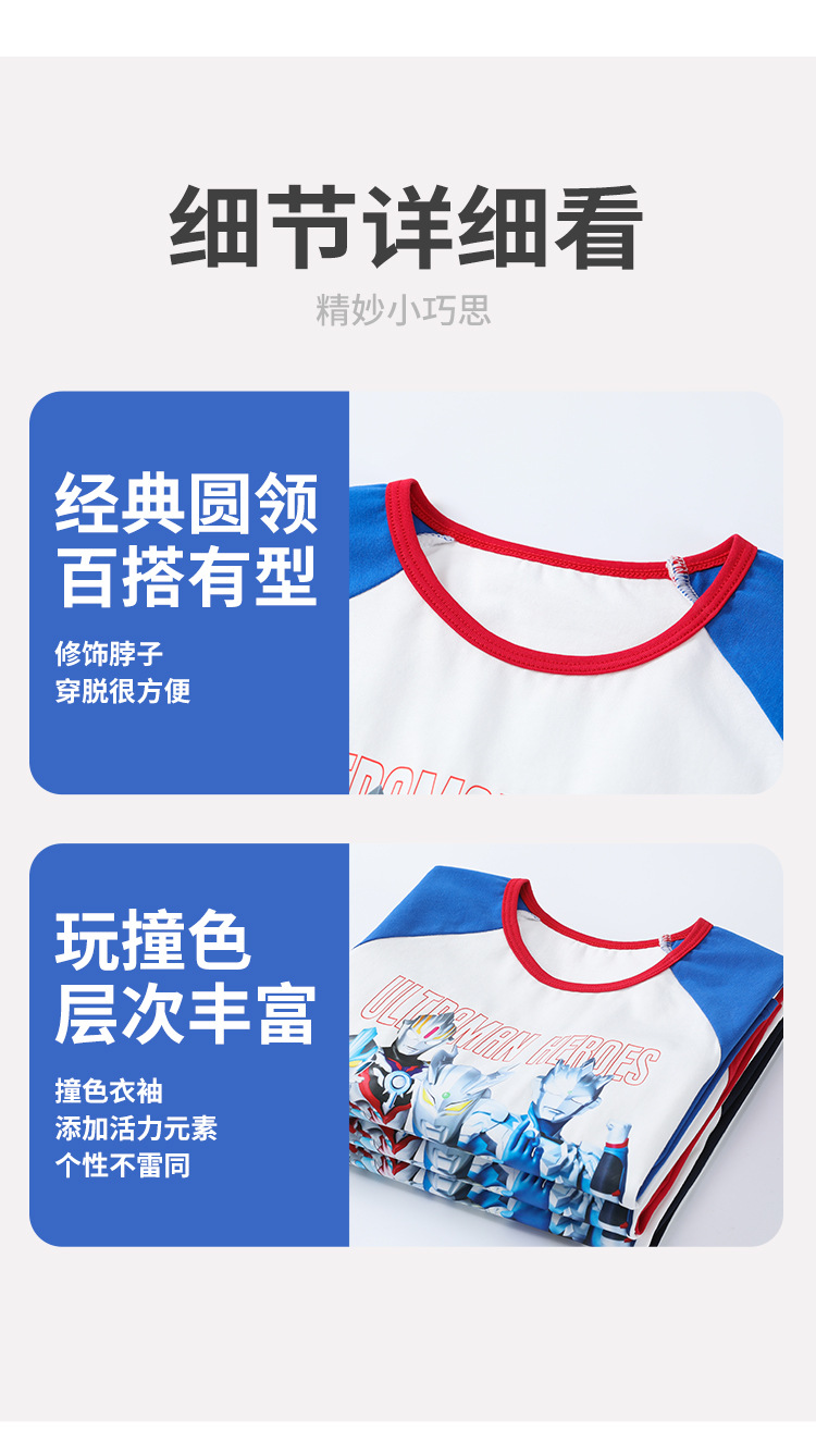 Serozet Combination Boys 순수 코튼 봄, 가을 티셔츠 긴 소매 어린이 만화 프린트 라운드 넥 컬러 블록 코튼 탑