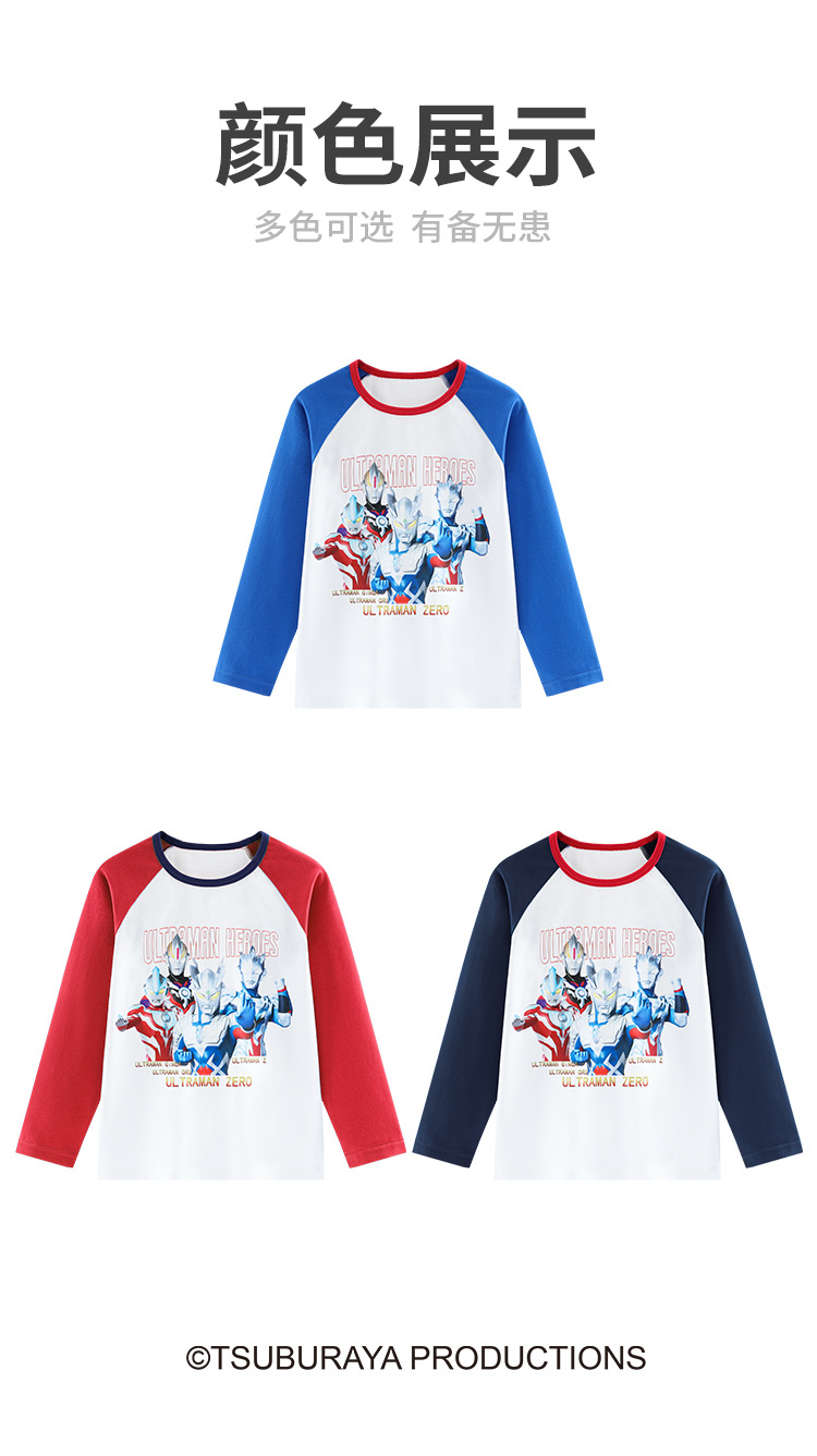 Serozet Combination Boys 순수 코튼 봄, 가을 티셔츠 긴 소매 어린이 만화 프린트 라운드 넥 컬러 블록 코튼 탑스토어 가기