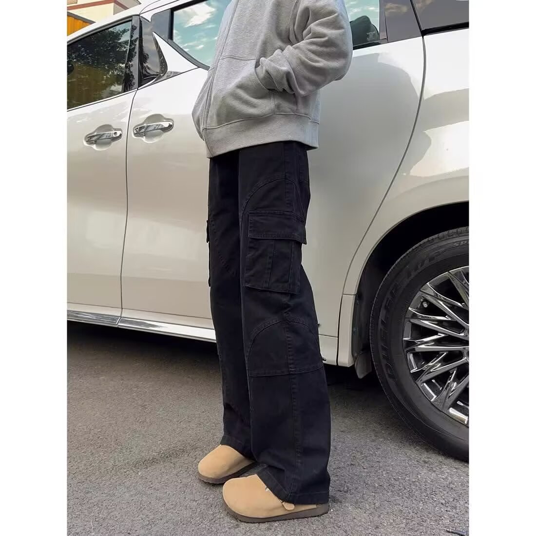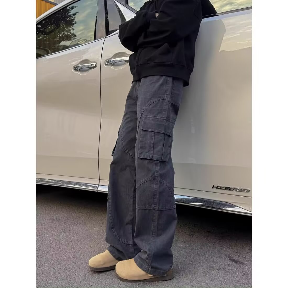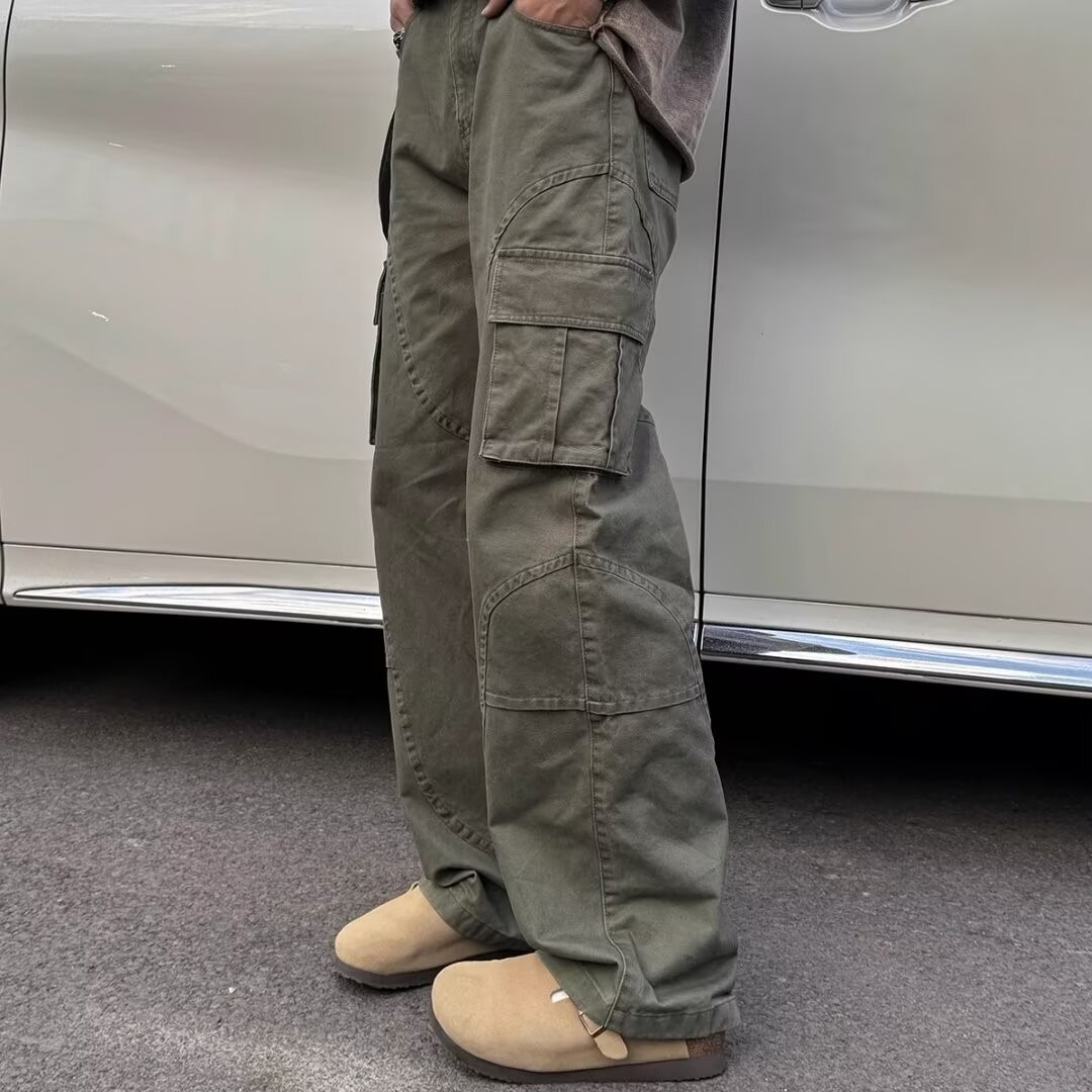 아메리칸 스타일 레트로 세탁 멀티 포켓 크레인 바지 남성 스트리트 드레스 스트레이트 루즈 트렌디 브랜드 와이드 레그 캐주얼 긴 바지스토어 가기