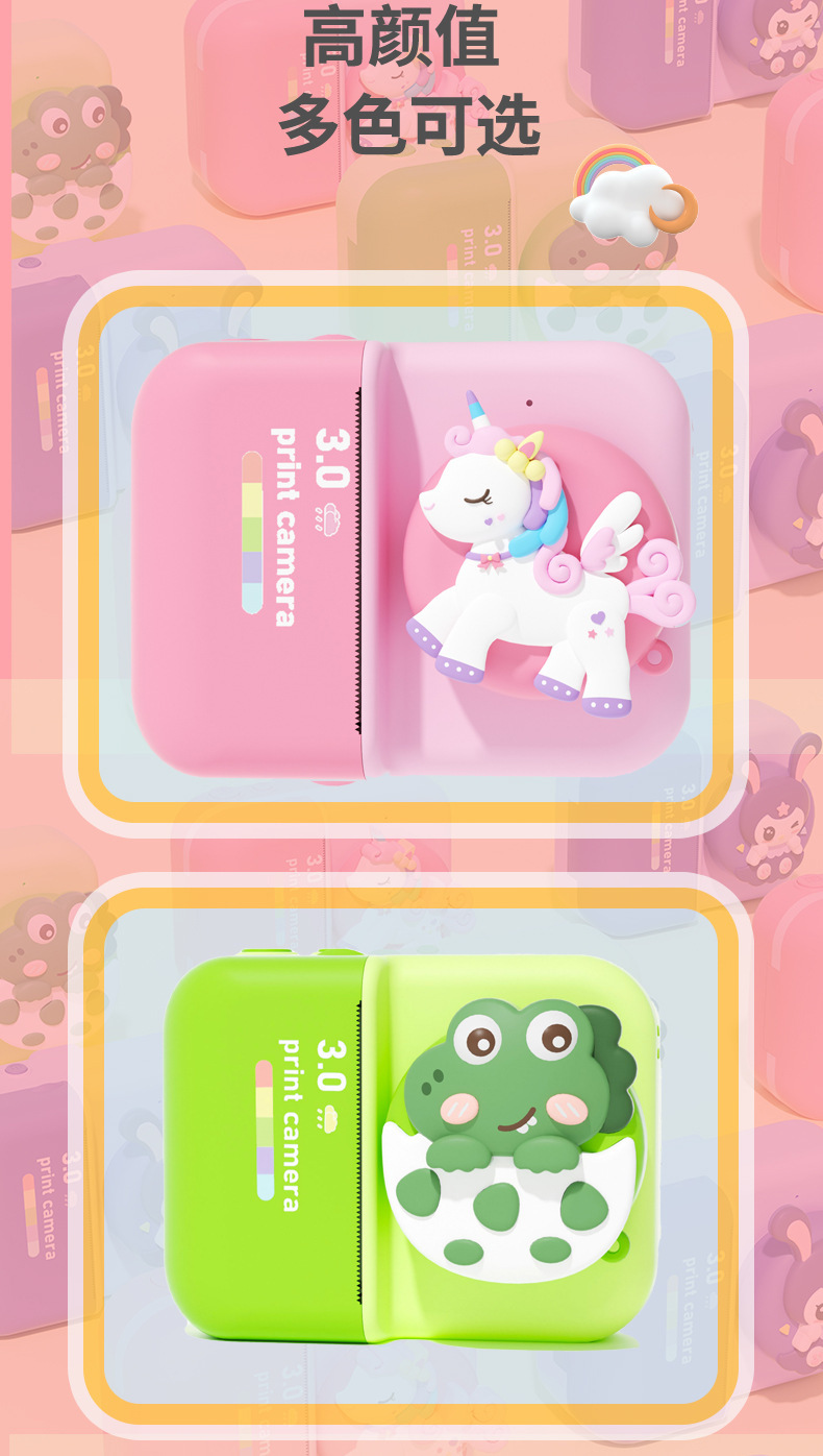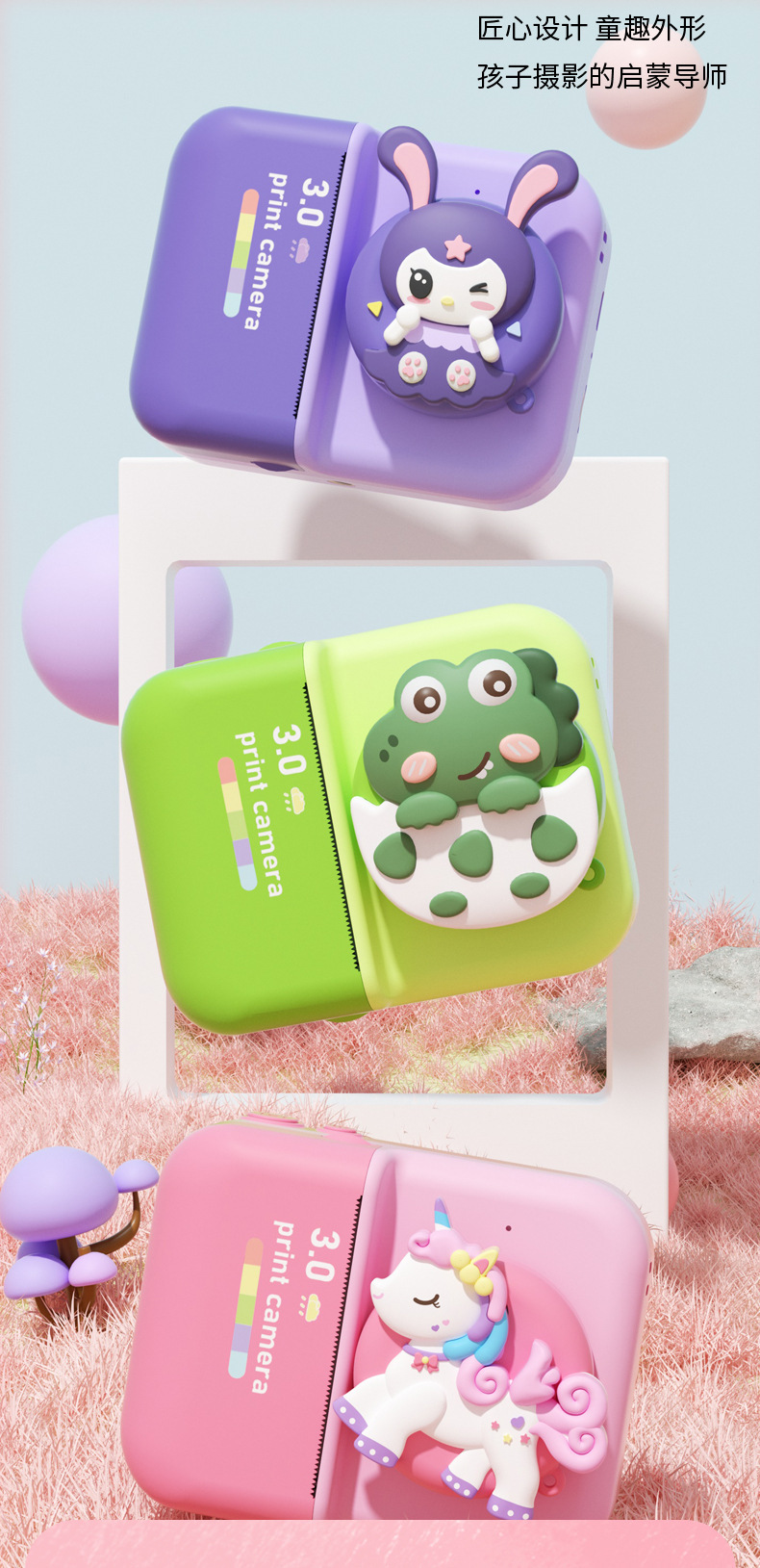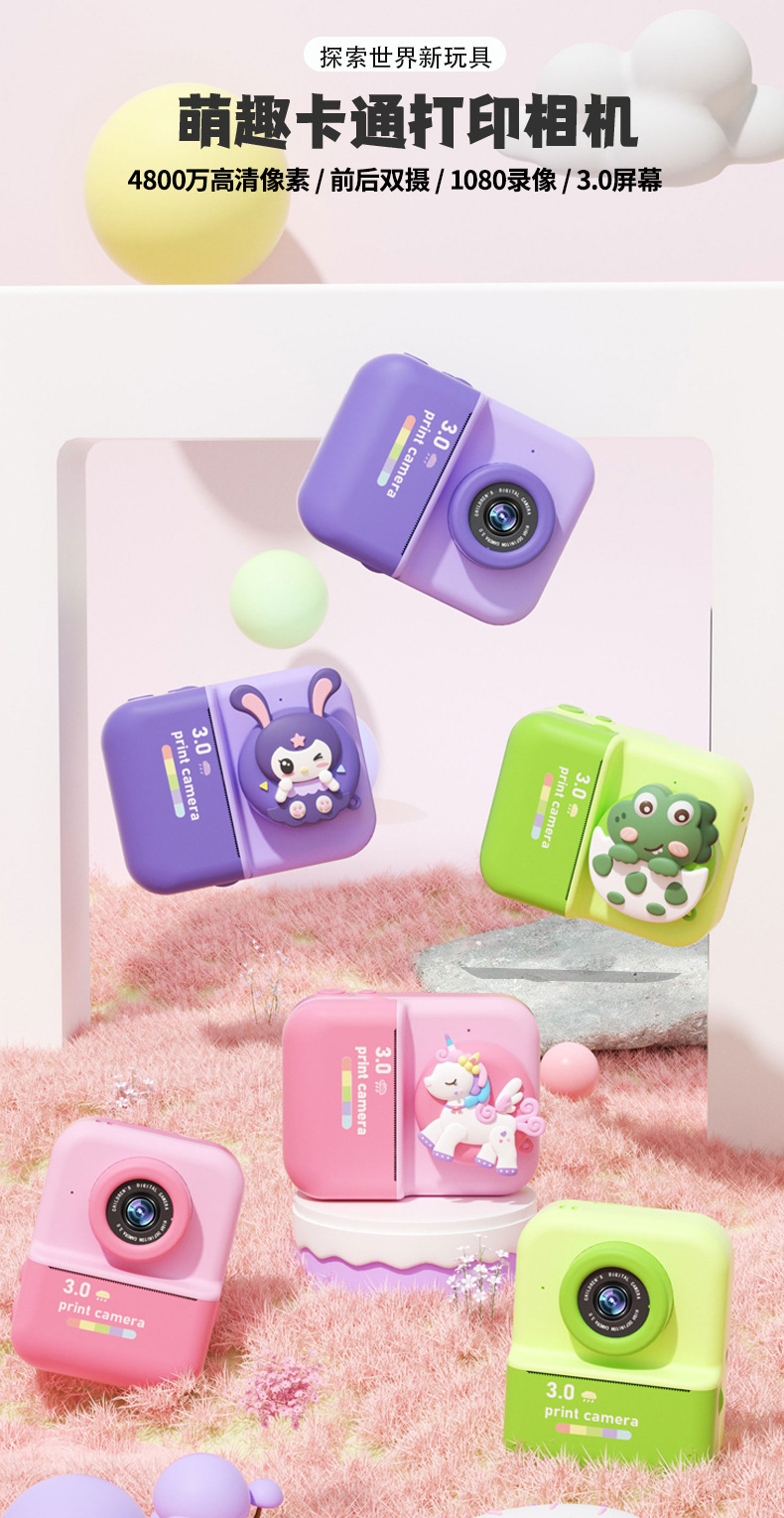 국경 간 새로운 만화 D3 어린이용 폴라로이드 인쇄 카메라 즉석 휴대용 고화질 디지털 카메라