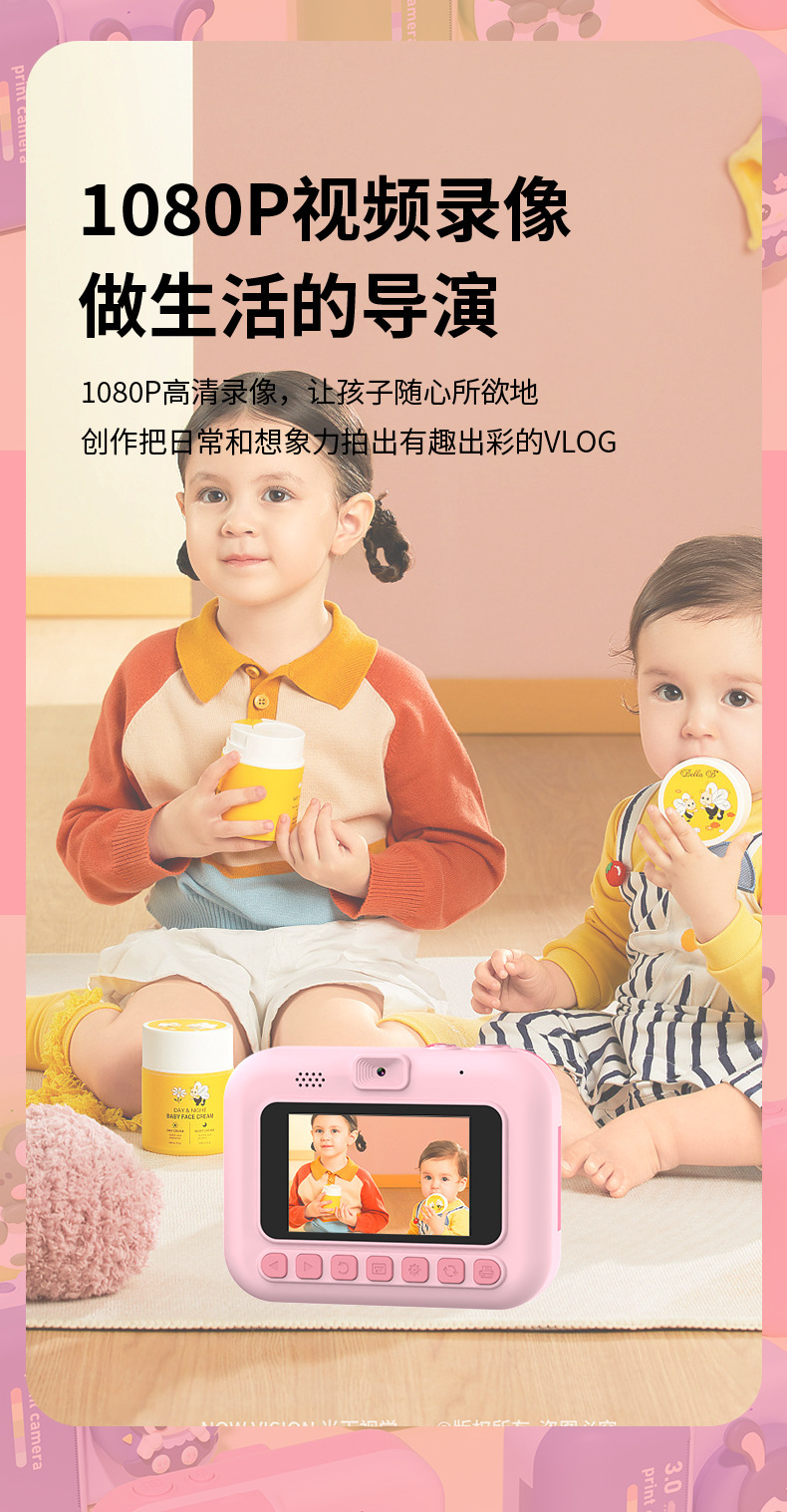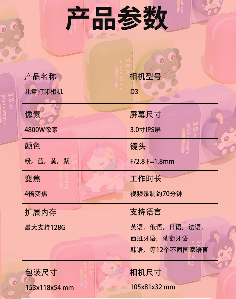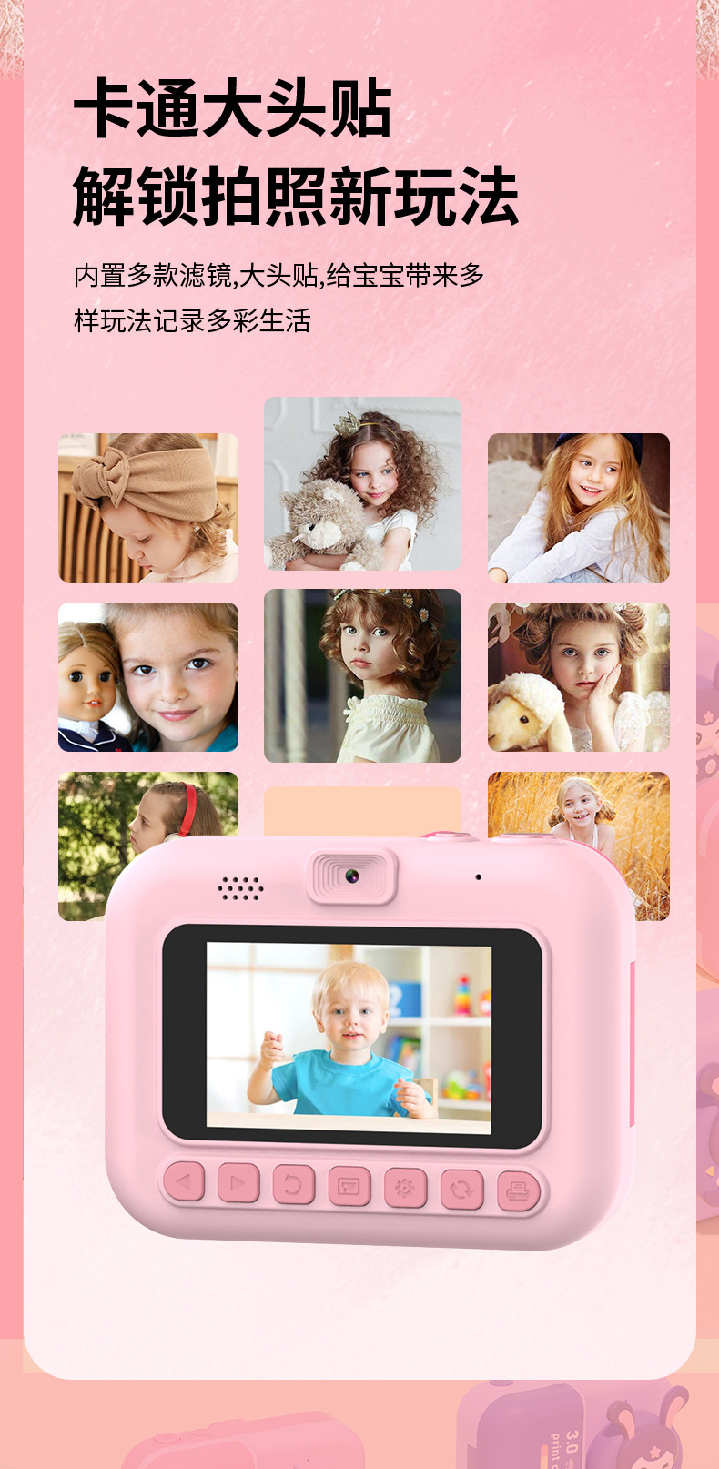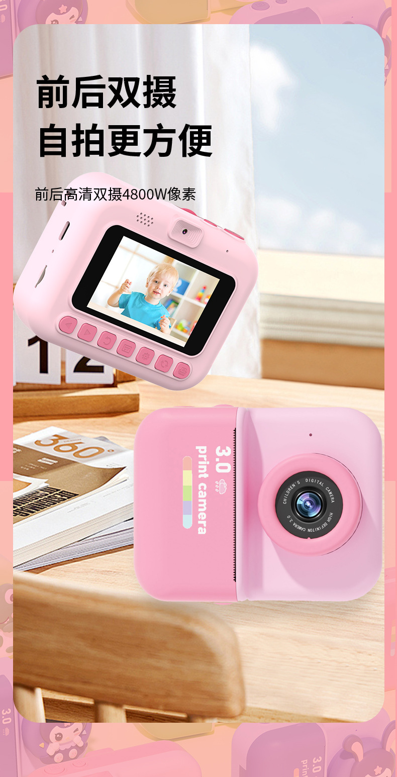 국경 간 새로운 만화 D3 어린이용 폴라로이드 인쇄 카메라 즉석 휴대용 고화질 디지털 카메라