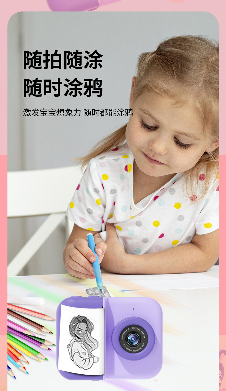 국경 간 새로운 만화 D3 어린이용 폴라로이드 인쇄 카메라 즉석 휴대용 고화질 디지털 카메라스토어 가기