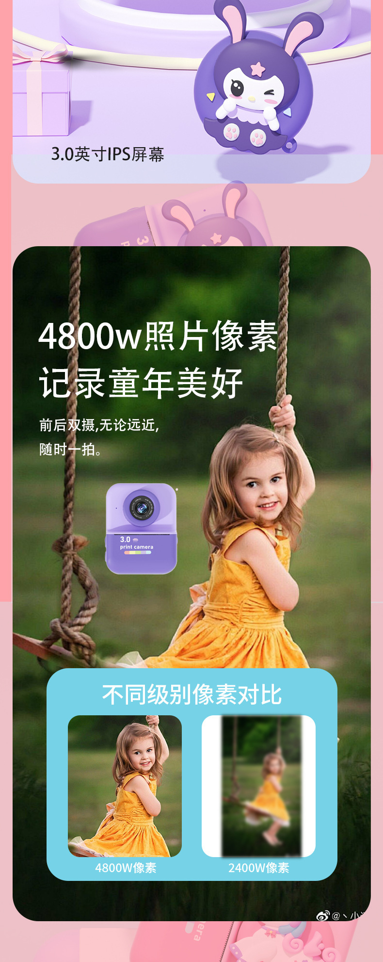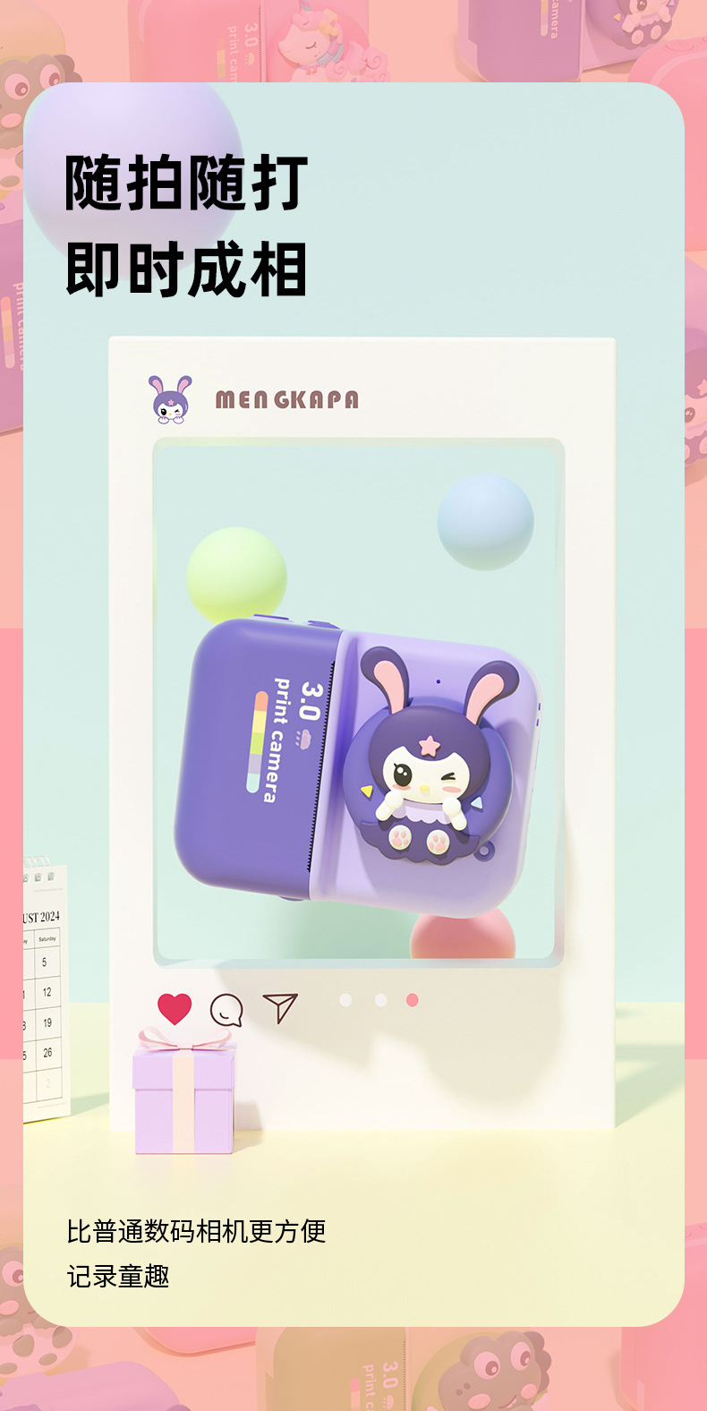 • D3 보라색 귀여운 토끼 폴라로이드(메모리 카드 제외)