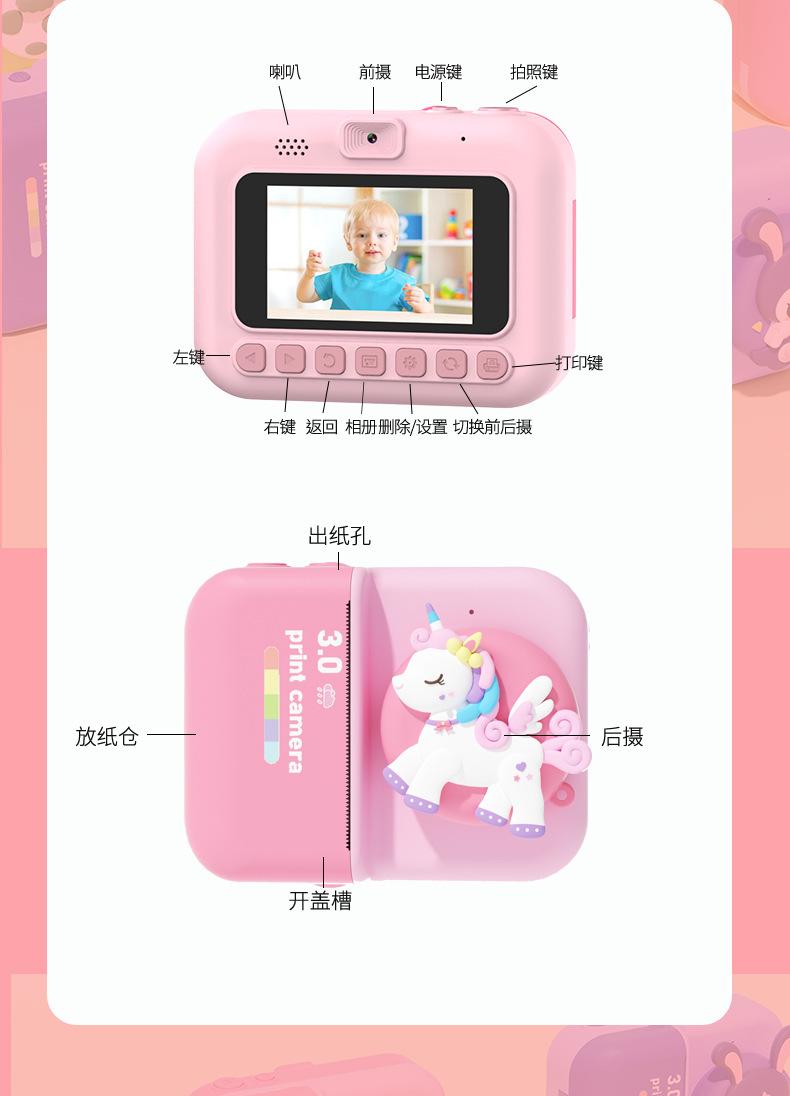 • D3 핑크 유니콘 폴라로이드(메모리 카드 제외)