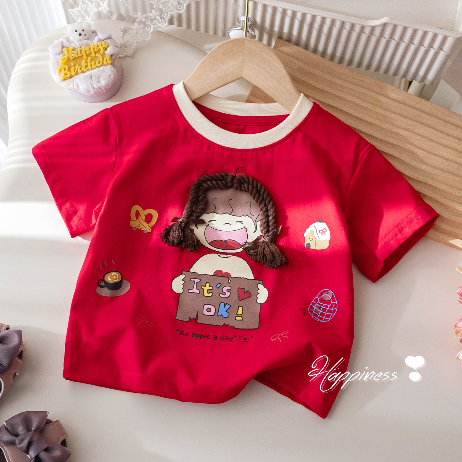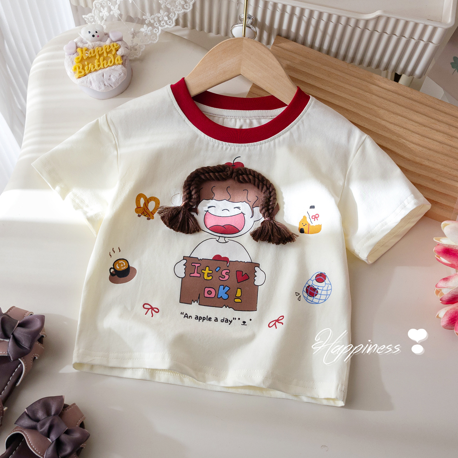 여자 여름 코튼 반팔 티셔츠 귀여운 만화 탑 여름 통기성 올매치 베이스 셔츠 아기 소녀스토어 가기