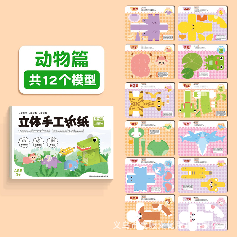 3차원 종이접기 어린이 수제 3D 종이접기 책 교육 장난감은 손과 두뇌를 운동시킵니다 DIY 재미있는 종이접기 카드 만들기스토어 가기