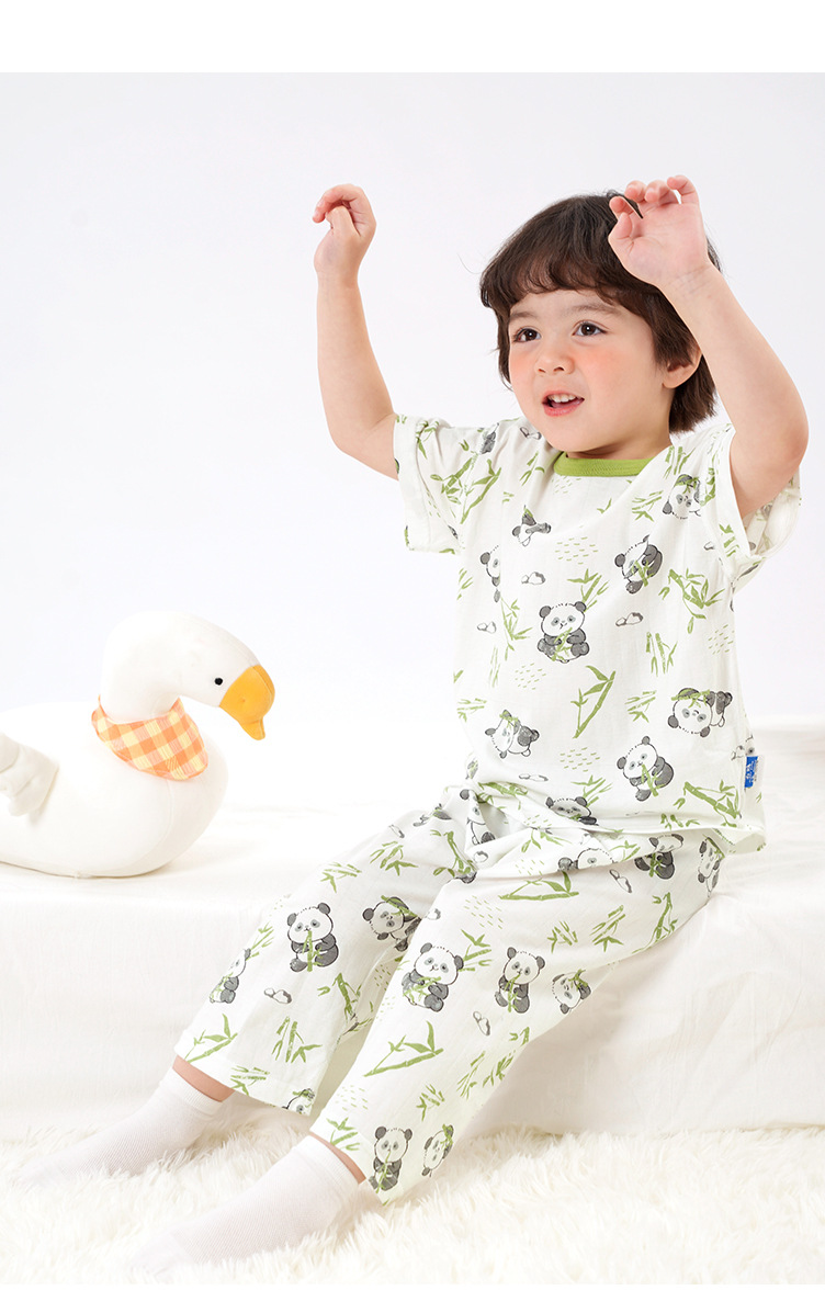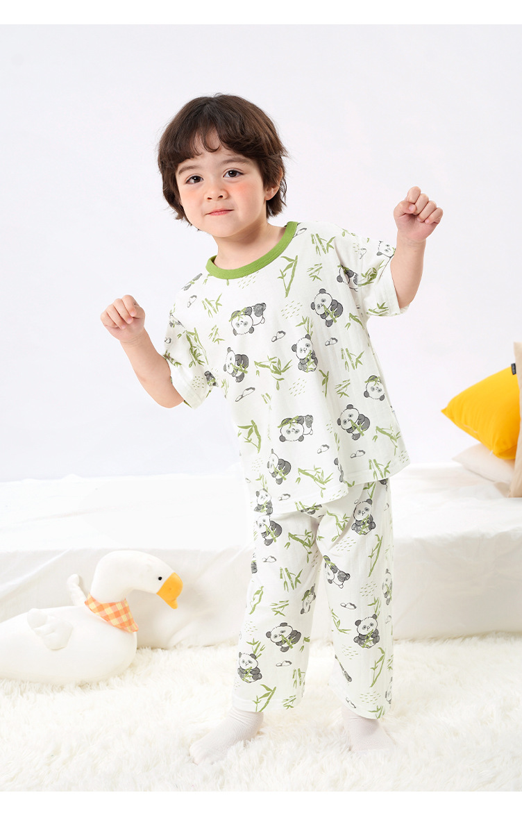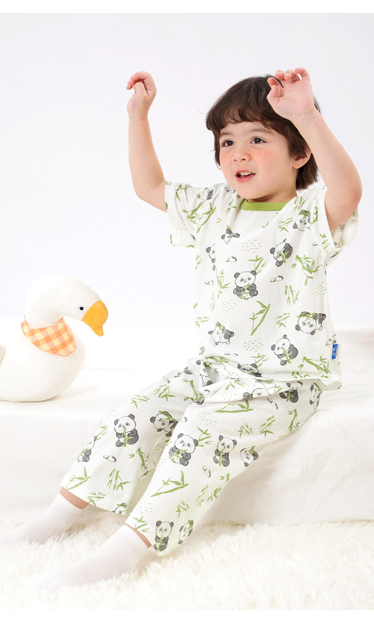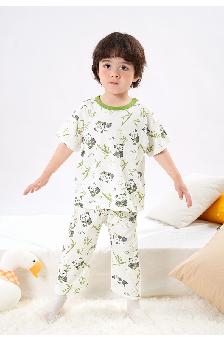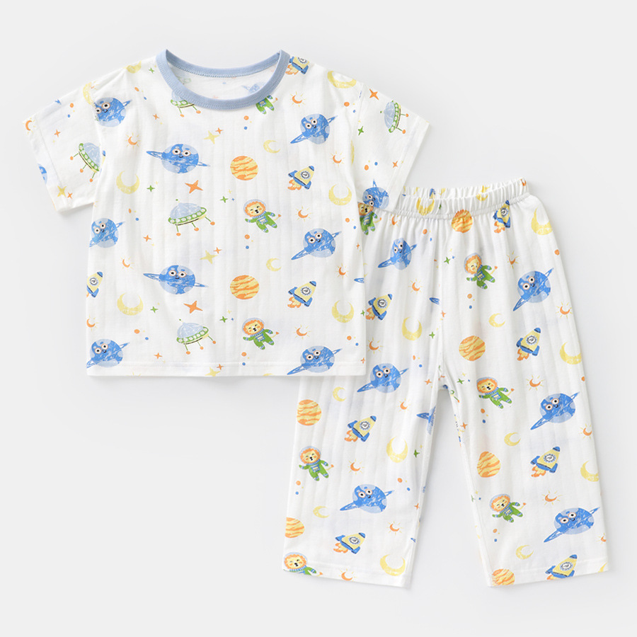 유럽풍 남아 프린트 반팔 7부 바지 홈웨어 세트 여름옷 아기 유아 여름 얇은 아동복스토어 가기