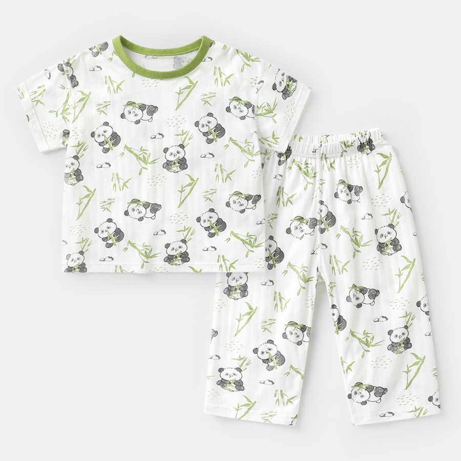 유럽풍 남아 프린트 반팔 7부 바지 홈웨어 세트 여름옷 아기 유아 여름 얇은 아동복