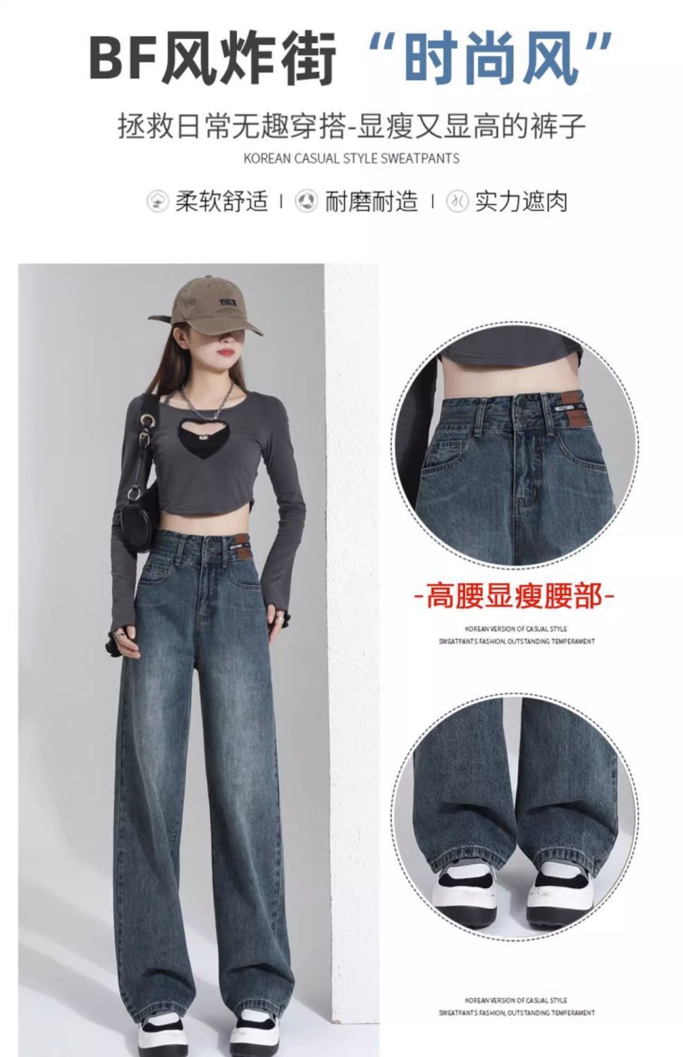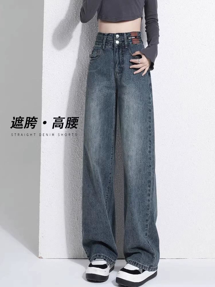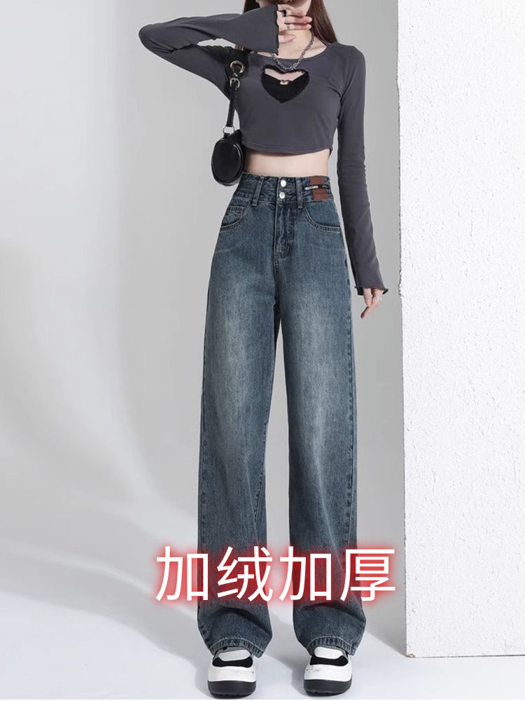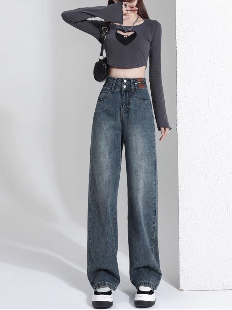 레트로 와이드 레그 청바지 여성용 2026년 신상 봄 가을 슬림핏 슬리밍 효과 큰 사이즈 스트레이트 롱 팬츠스토어 가기