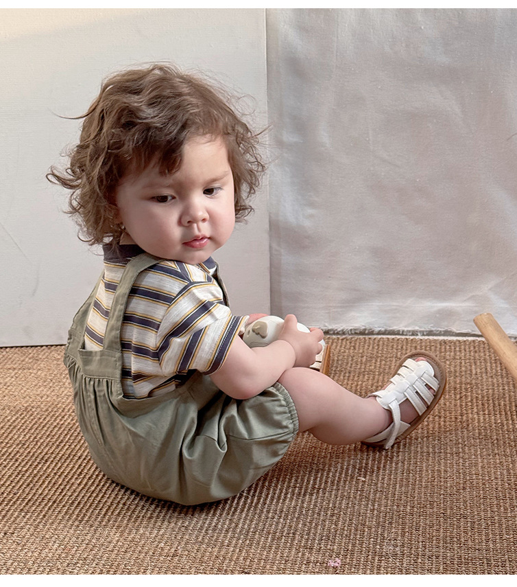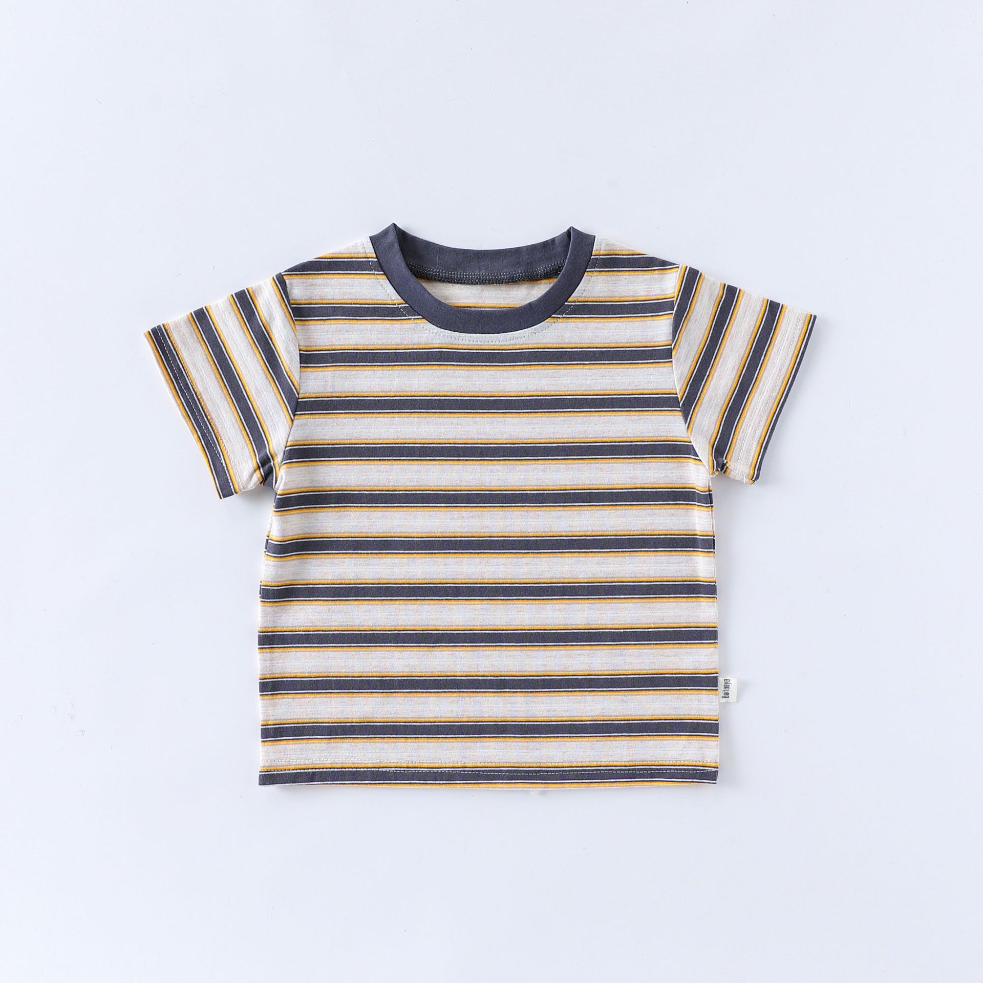 Ins 아기 옷 여름 순수한면 반팔 웨스턴 스타일 아기 소년과 소녀 여름 줄무늬 티셔츠 탑스토어 가기