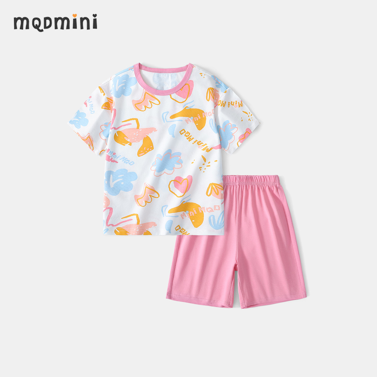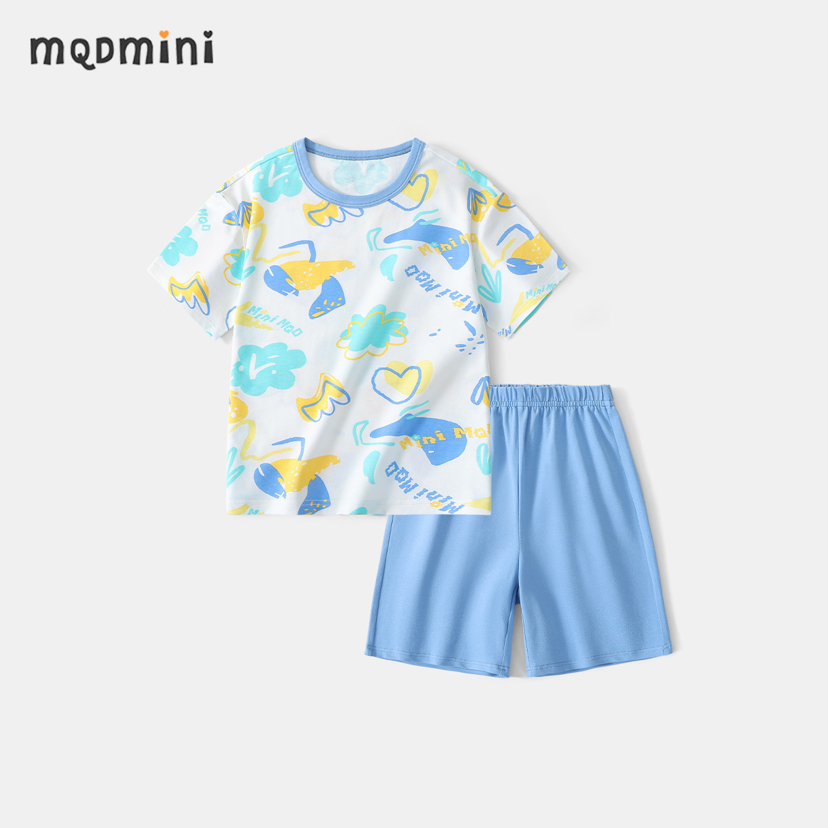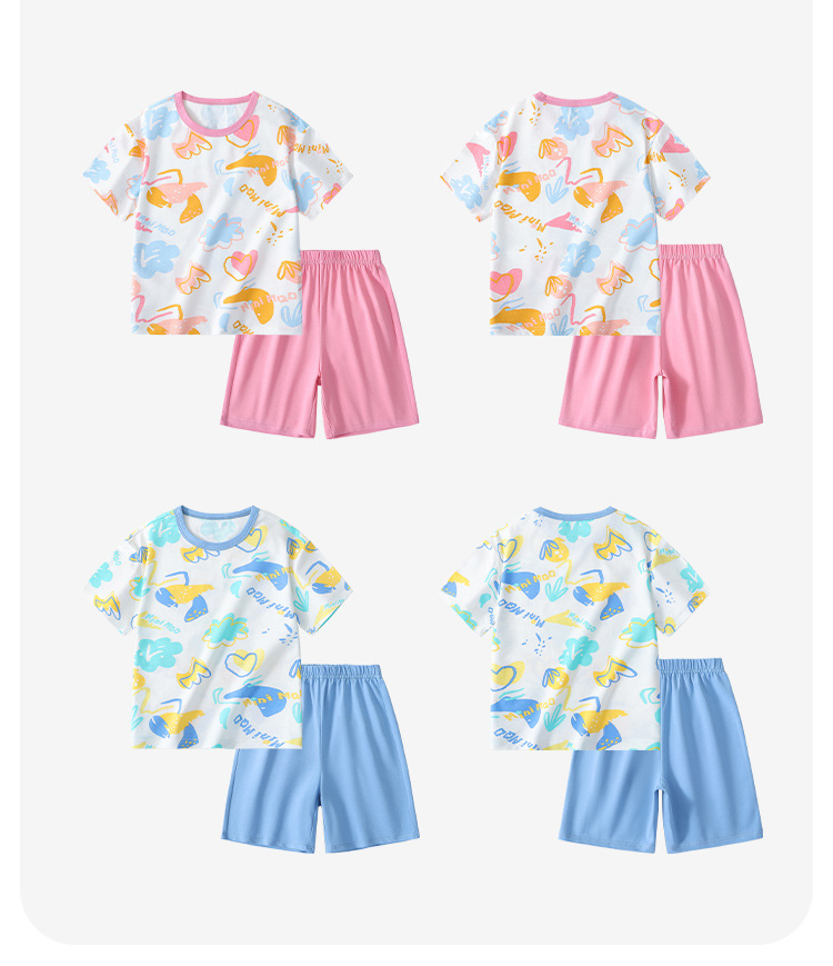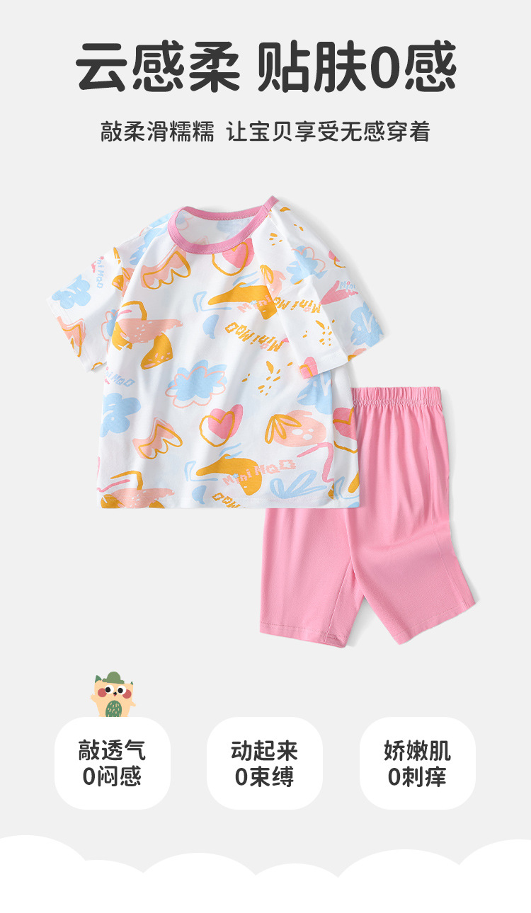MQDmini 어린이 홈 의류 세트 여름 새 여아 반팔 파자마 소년 반팔 반바지 투피스 세트스토어 가기