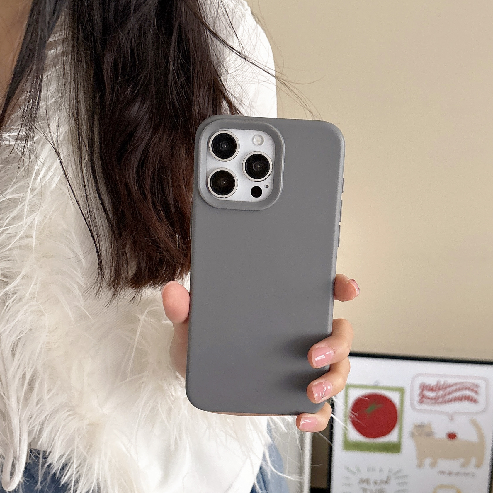 iPhone16promax에 적합한 새로운 단색 간단한 Apple 15 휴대폰 케이스 17 고급 부드러운 접착제 13 낙하 방지 12