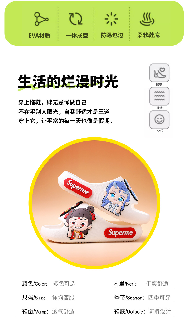Nezha 어린이 슬리퍼 소년 여름 새 소녀 실내 홈 목욕 미끄럼 방지 부드러운 바닥 아기 샌들스토어 가기