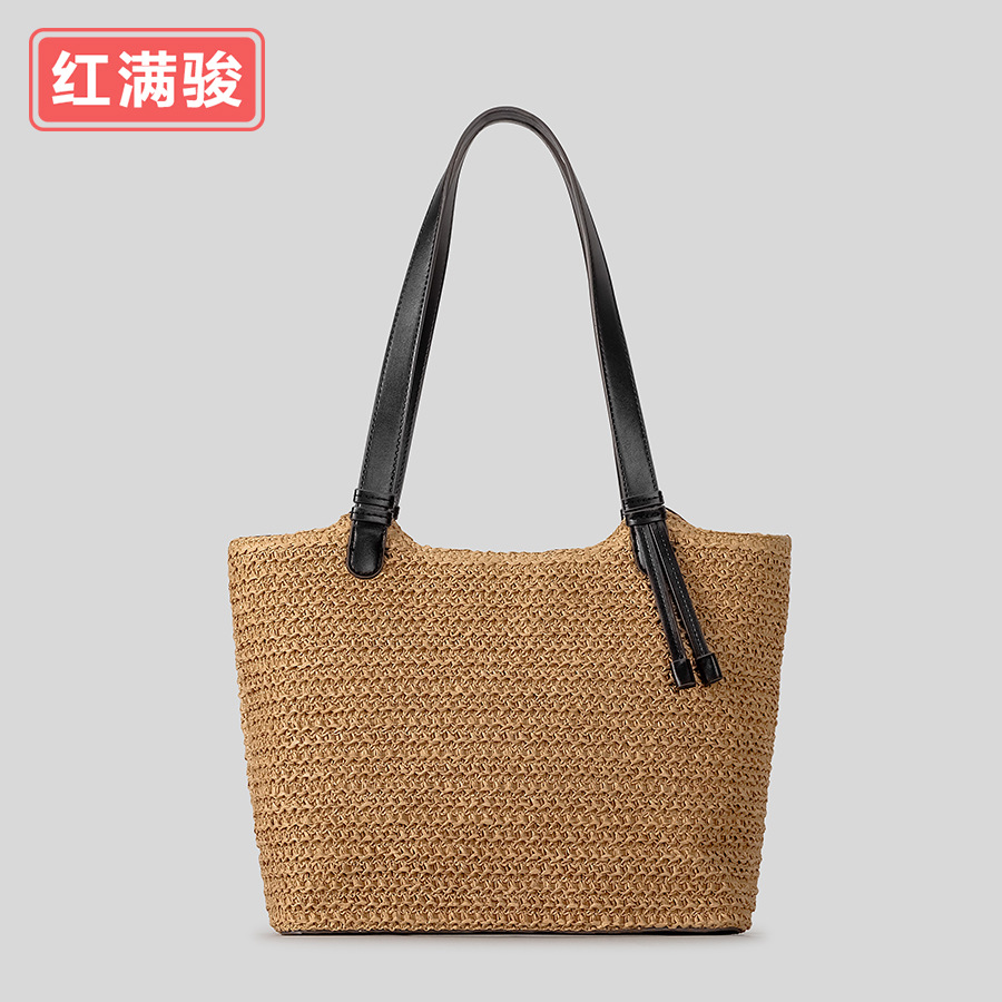 대용량 밀짚 짠 가방 여성 서양식 올 매치 통근 토트 백 해변 짠 어깨 가방 여성 공장 도매스토어 가기