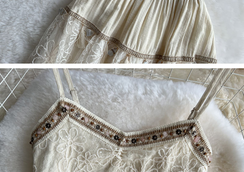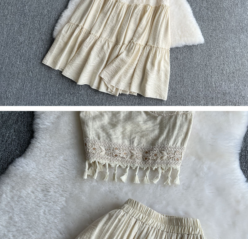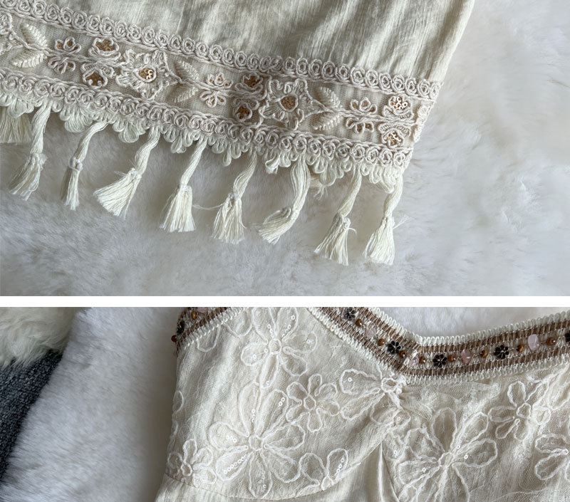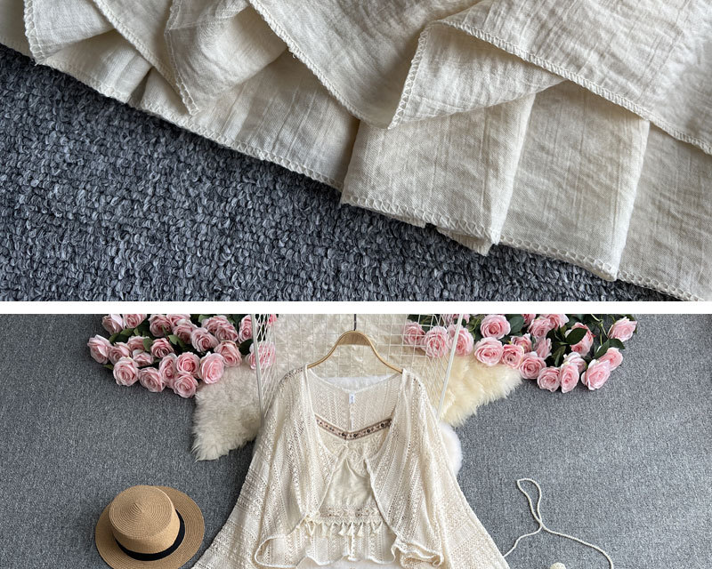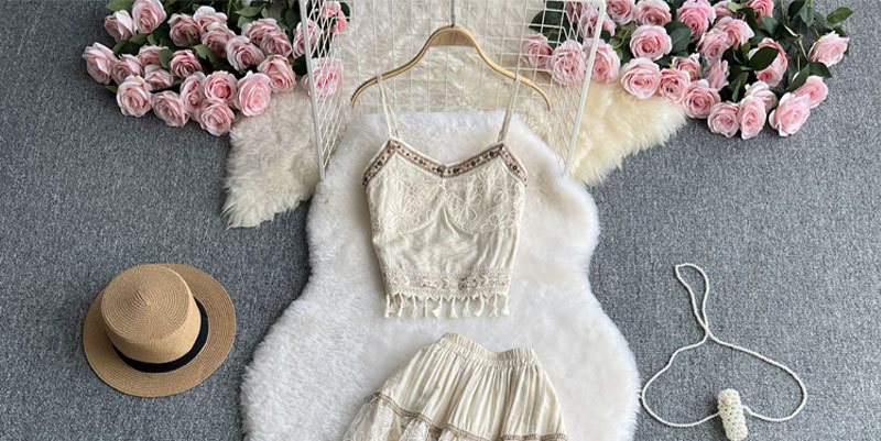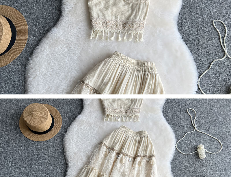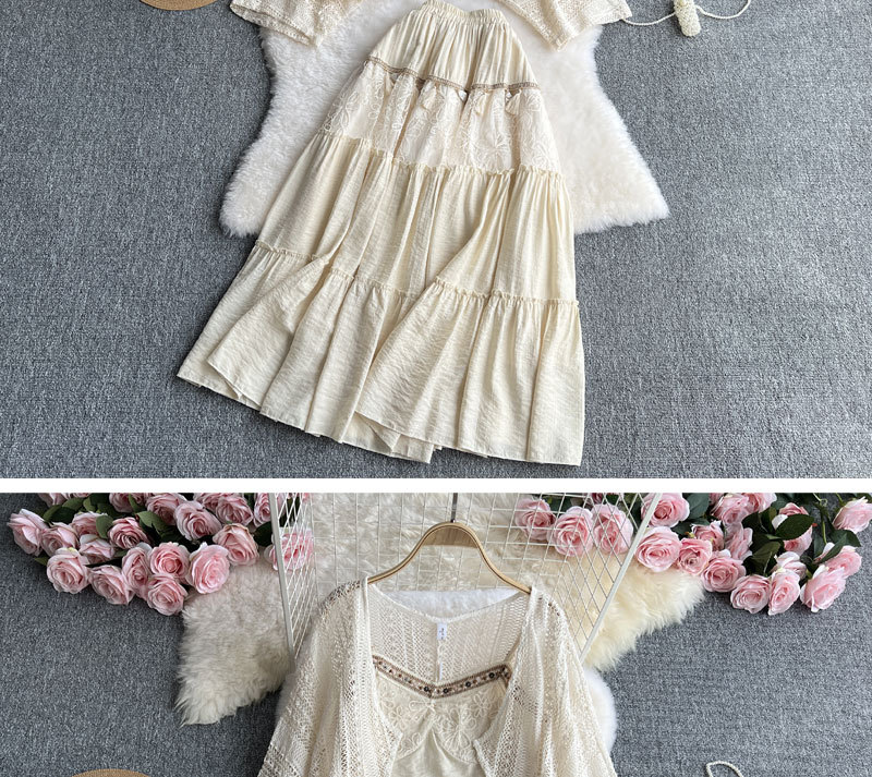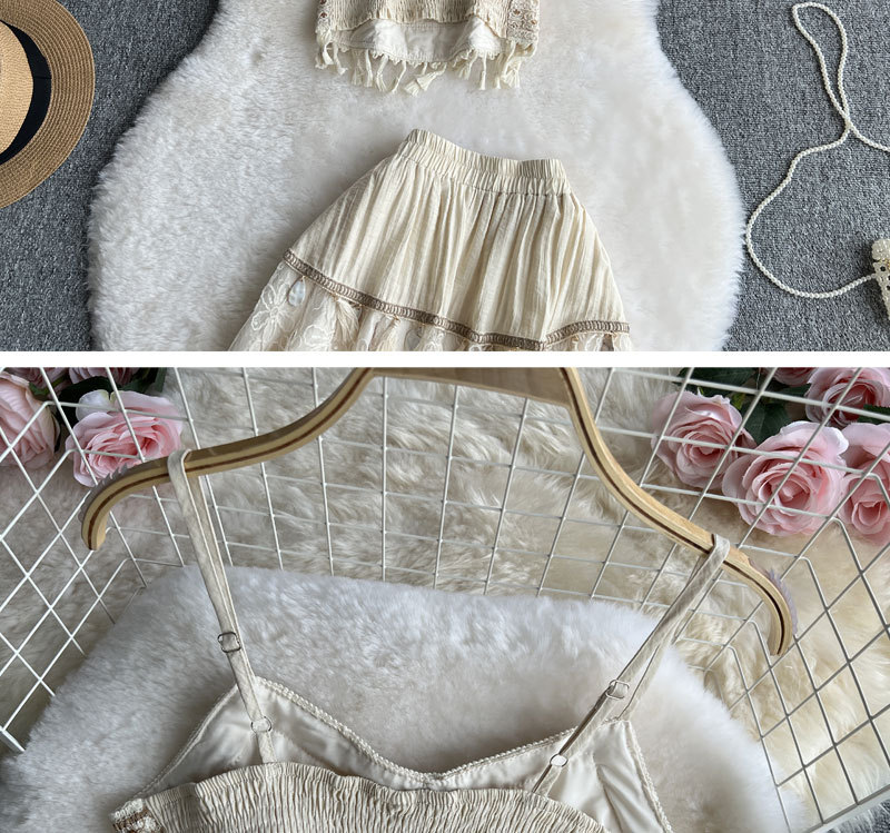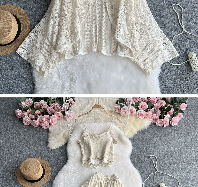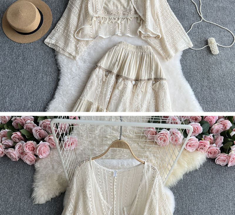 여행 휴가 착용 3 조각 여성 수놓은 술 카미솔 외부 착용 메쉬 긴팔 재킷 스커트