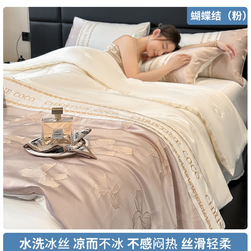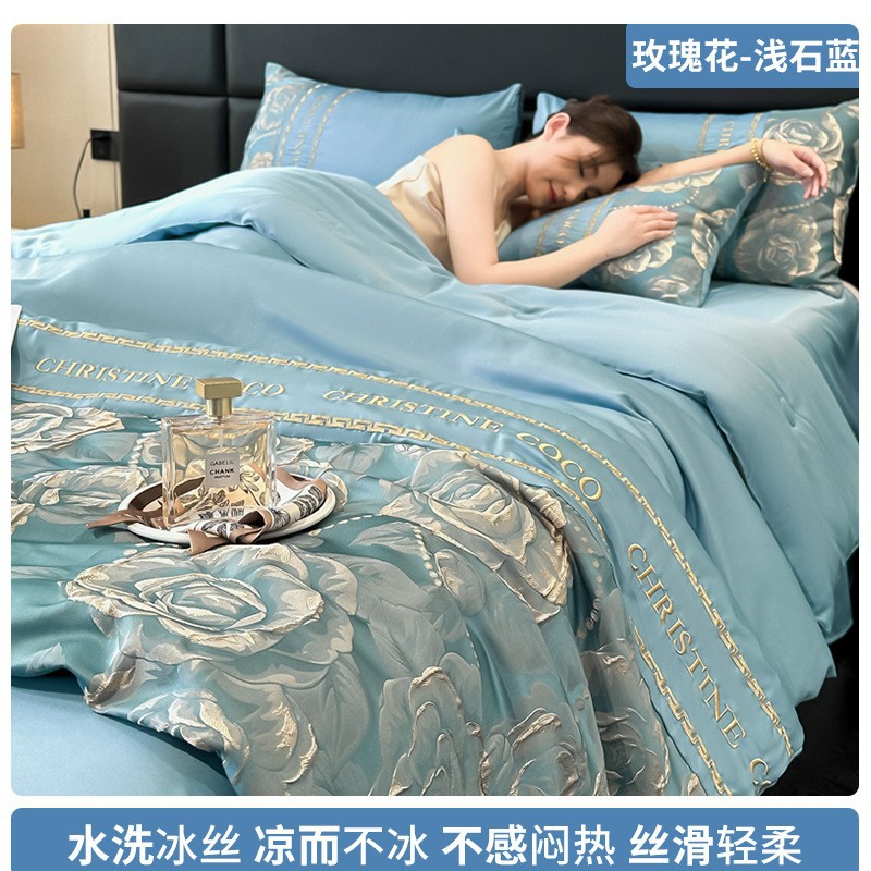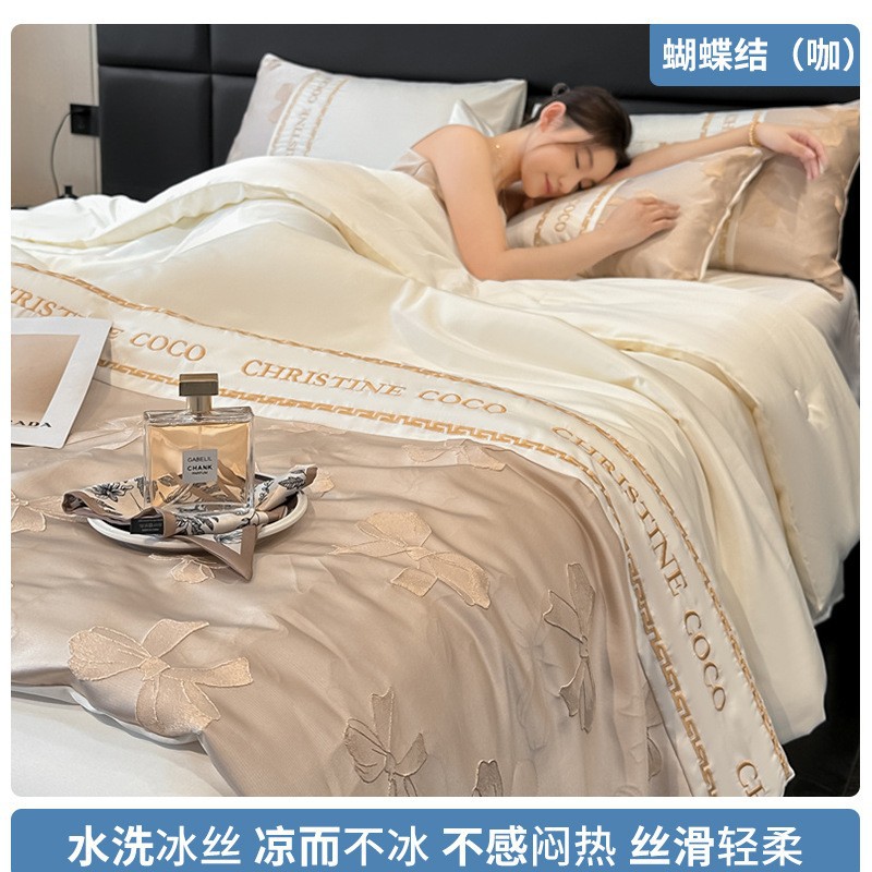 여름 시원한 얼음 실크 여름 이불 에어컨 이불 4피스 싱글 및 더블 세탁 가능한 얼음 실크 여름 시원한 이불 기계 세탁 가능한 얇은 이불스토어 가기