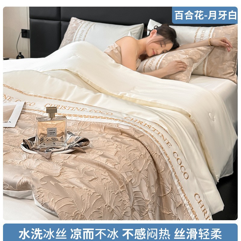 여름 시원한 얼음 실크 여름 이불 에어컨 이불 4피스 싱글 및 더블 세탁 가능한 얼음 실크 여름 시원한 이불 기계 세탁 가능한 얇은 이불