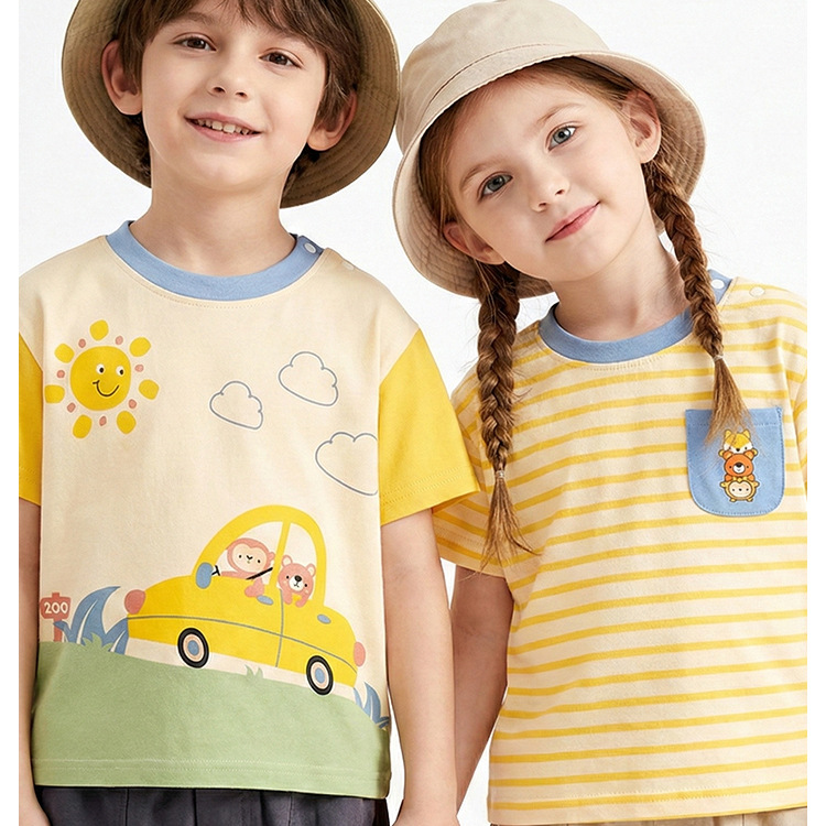 소년 반팔 티셔츠 순면 만화 여름 옷 어린이 캐주얼 반소매 아기의 최고 소녀 여름 옷스토어 가기