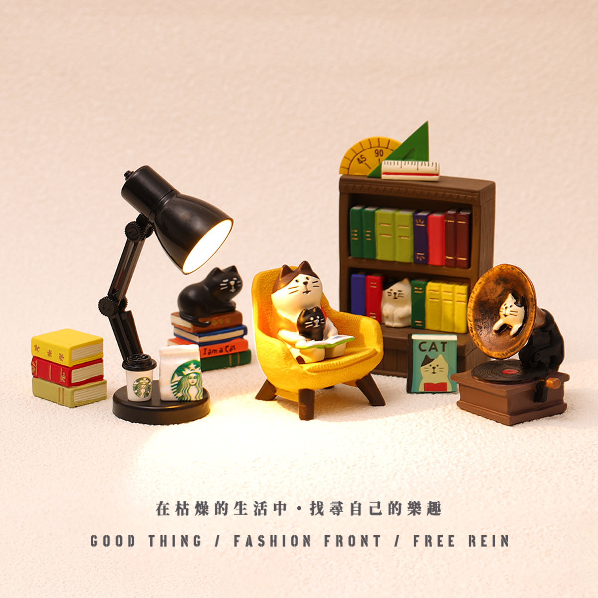 연구 귀여운 스튜디오 고양이 장식품 도서관 미니 미니어처 데스크탑 수지 공예 장식
