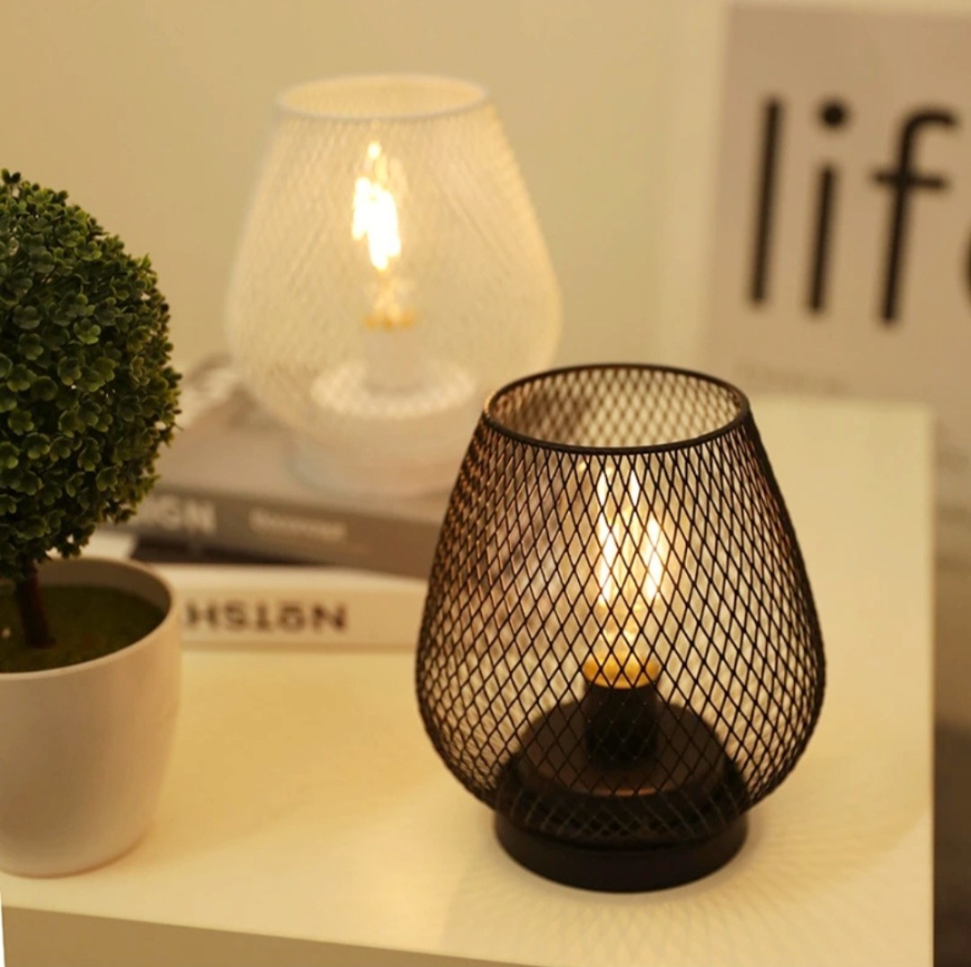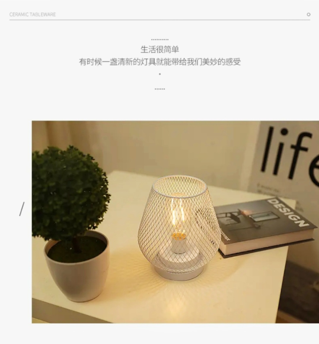 따뜻한 분위기의 조명 철제 와이어망 LED 테이블 램프 서재용 야간등 심플하고 따뜻한 침실 학생용 조명