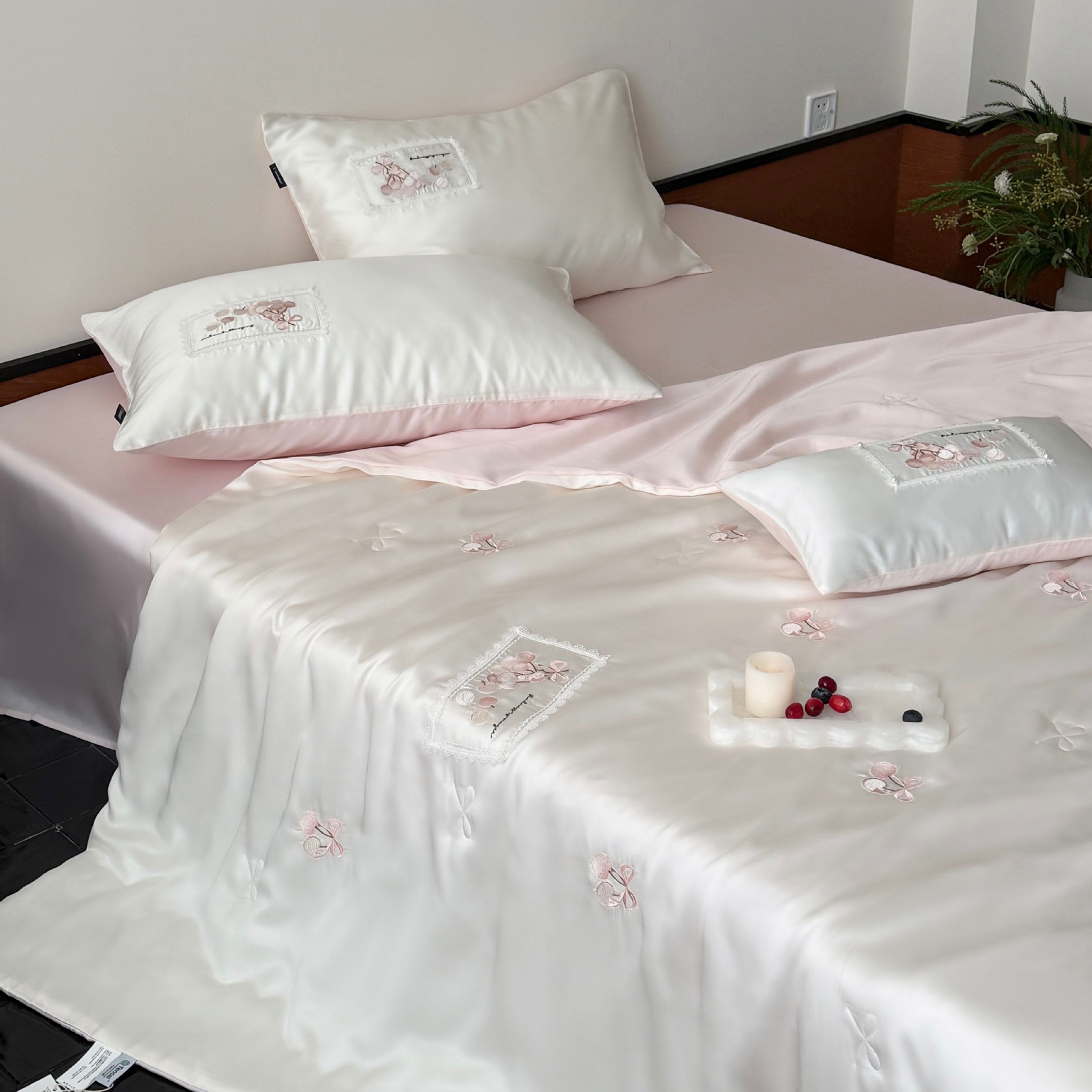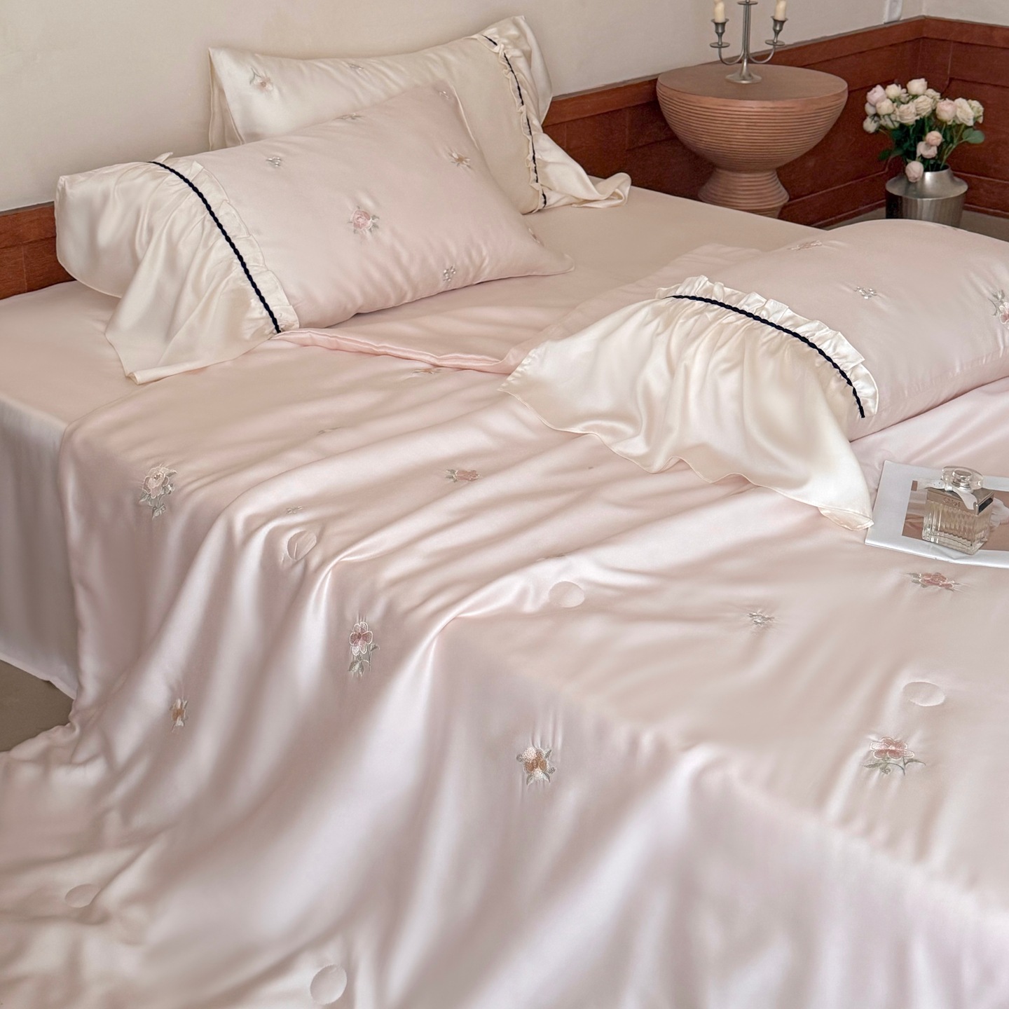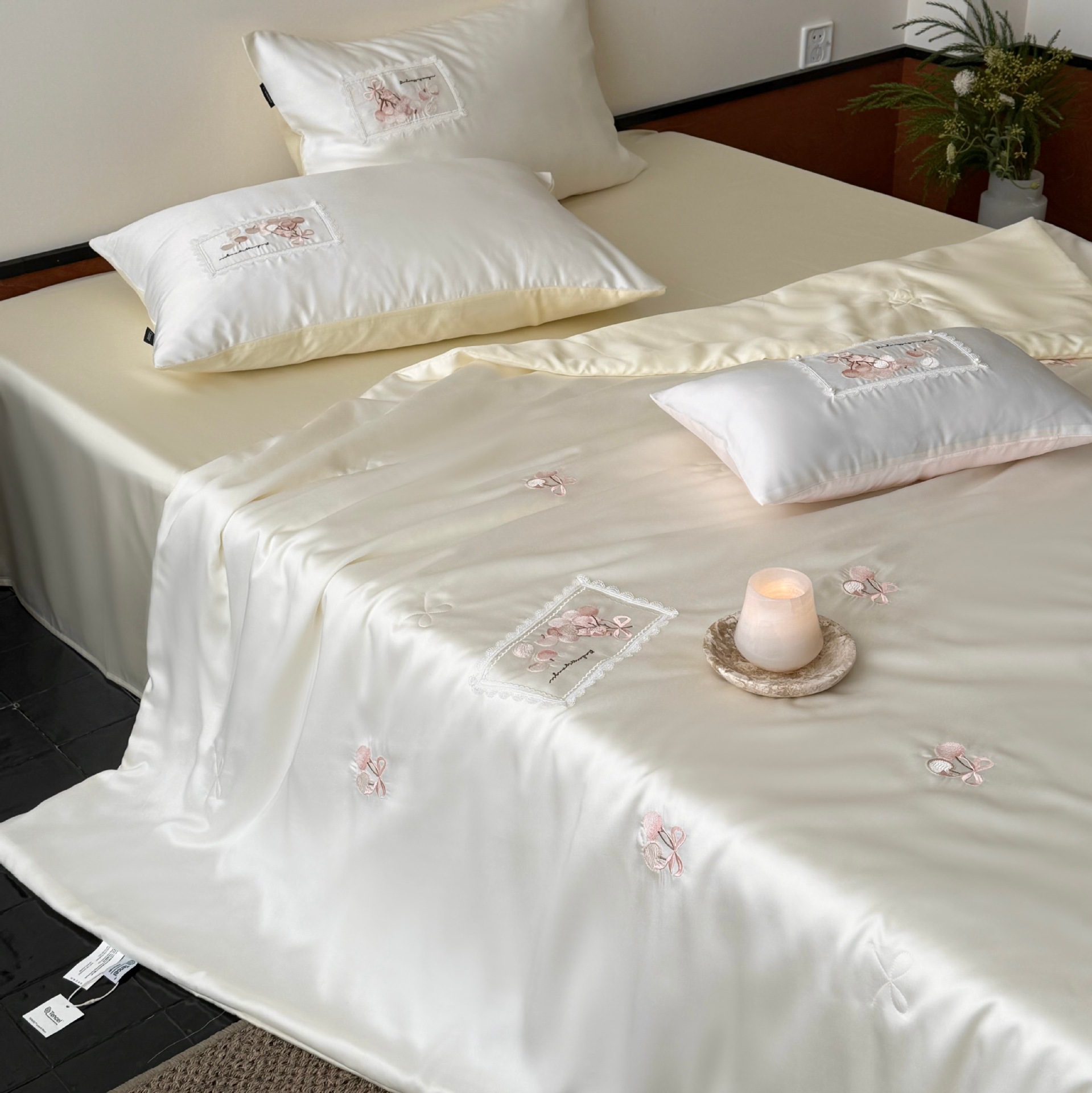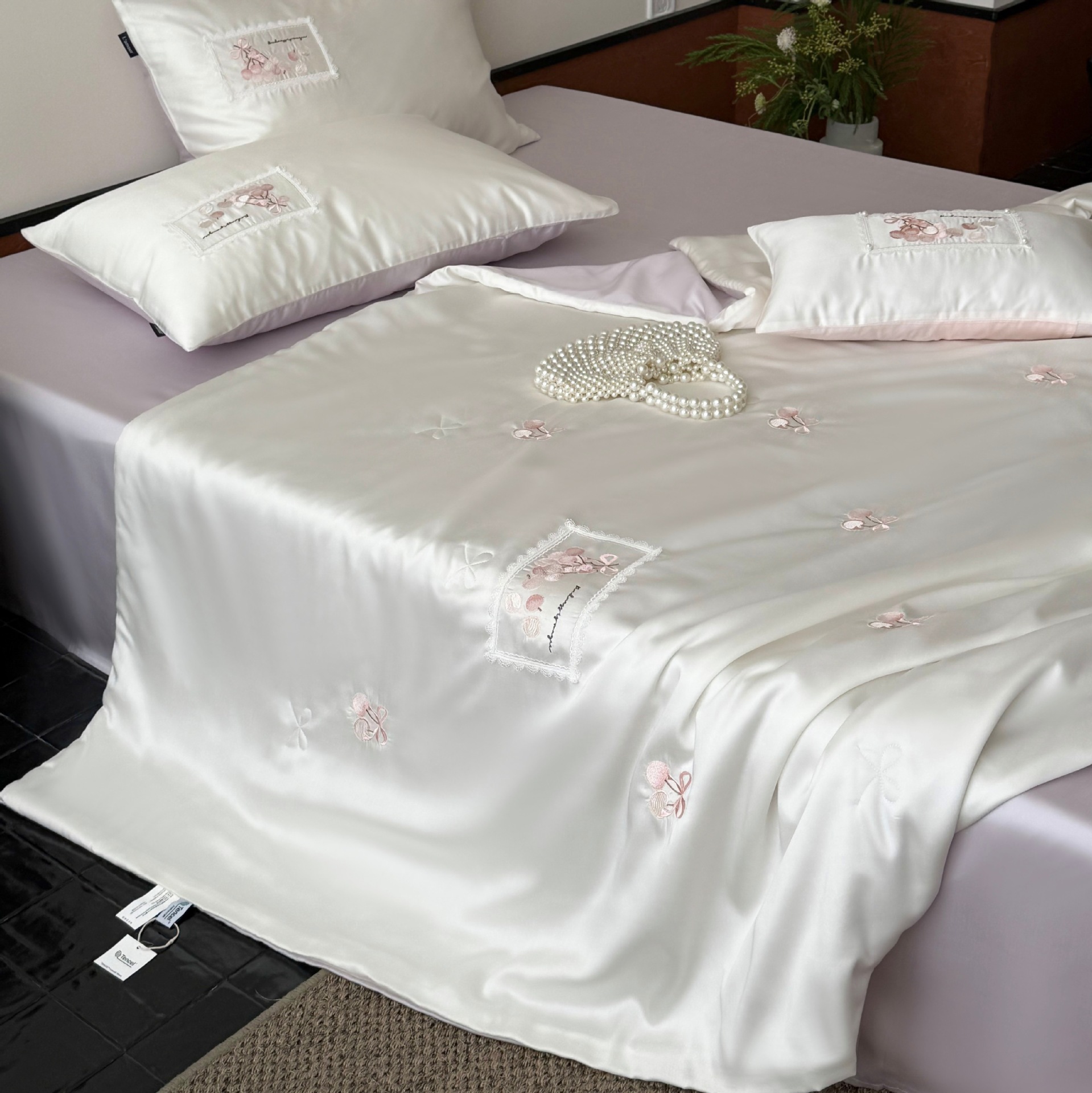 여름 60 양면 텐셀 여름 쿨 퀼트 4 피스 세트 소녀의 하트 꽃 자수 세척 가능한 쿨 에어컨 얇은 이불