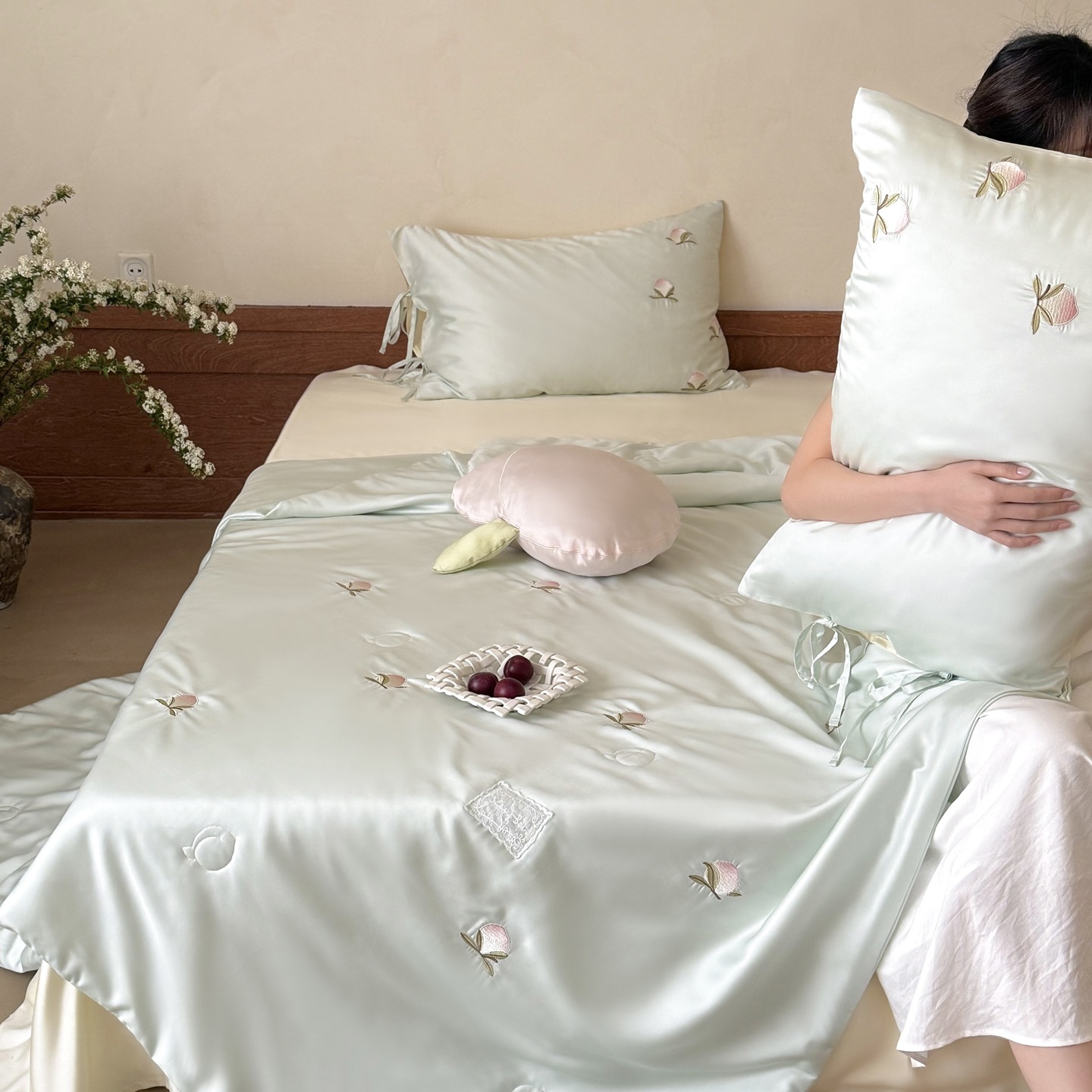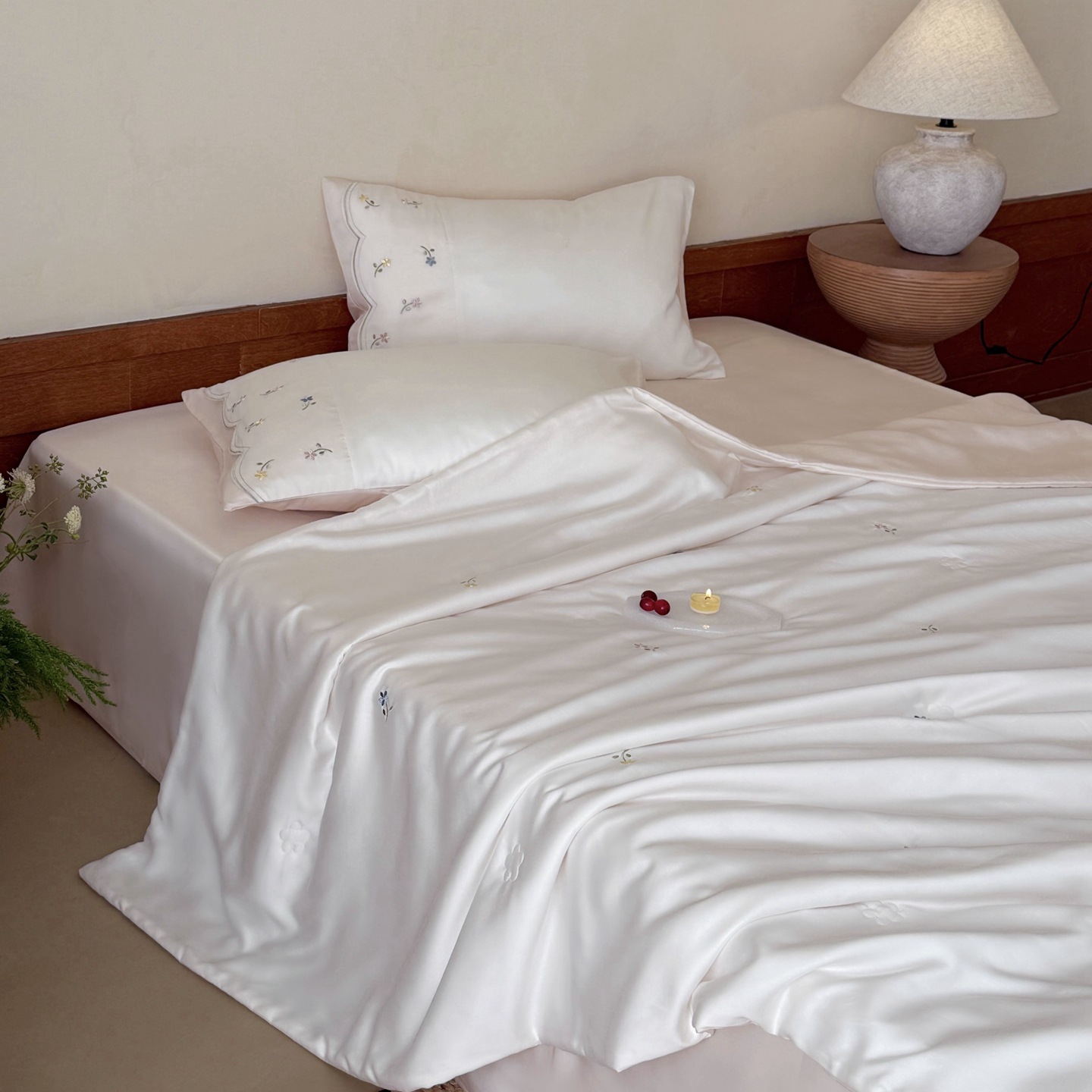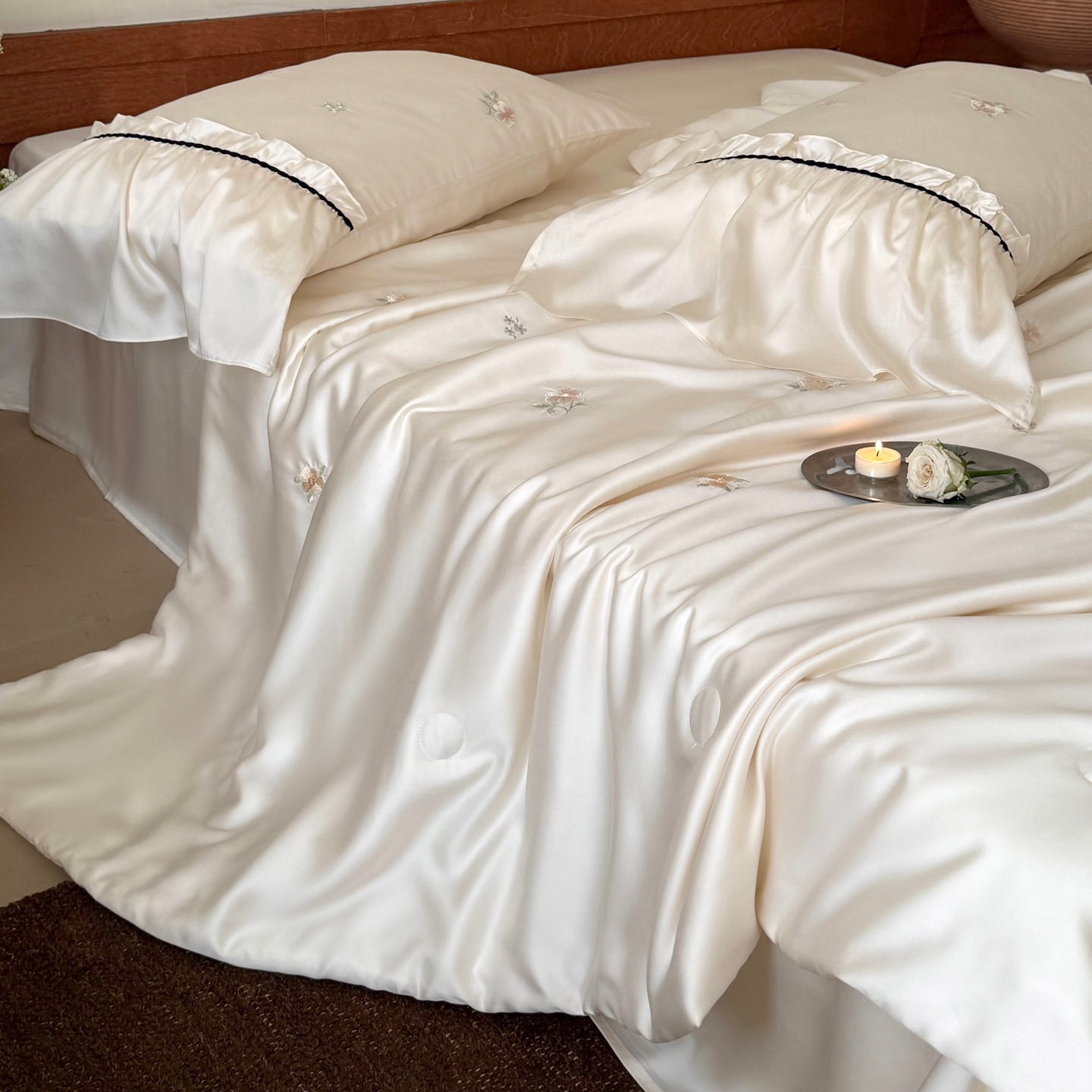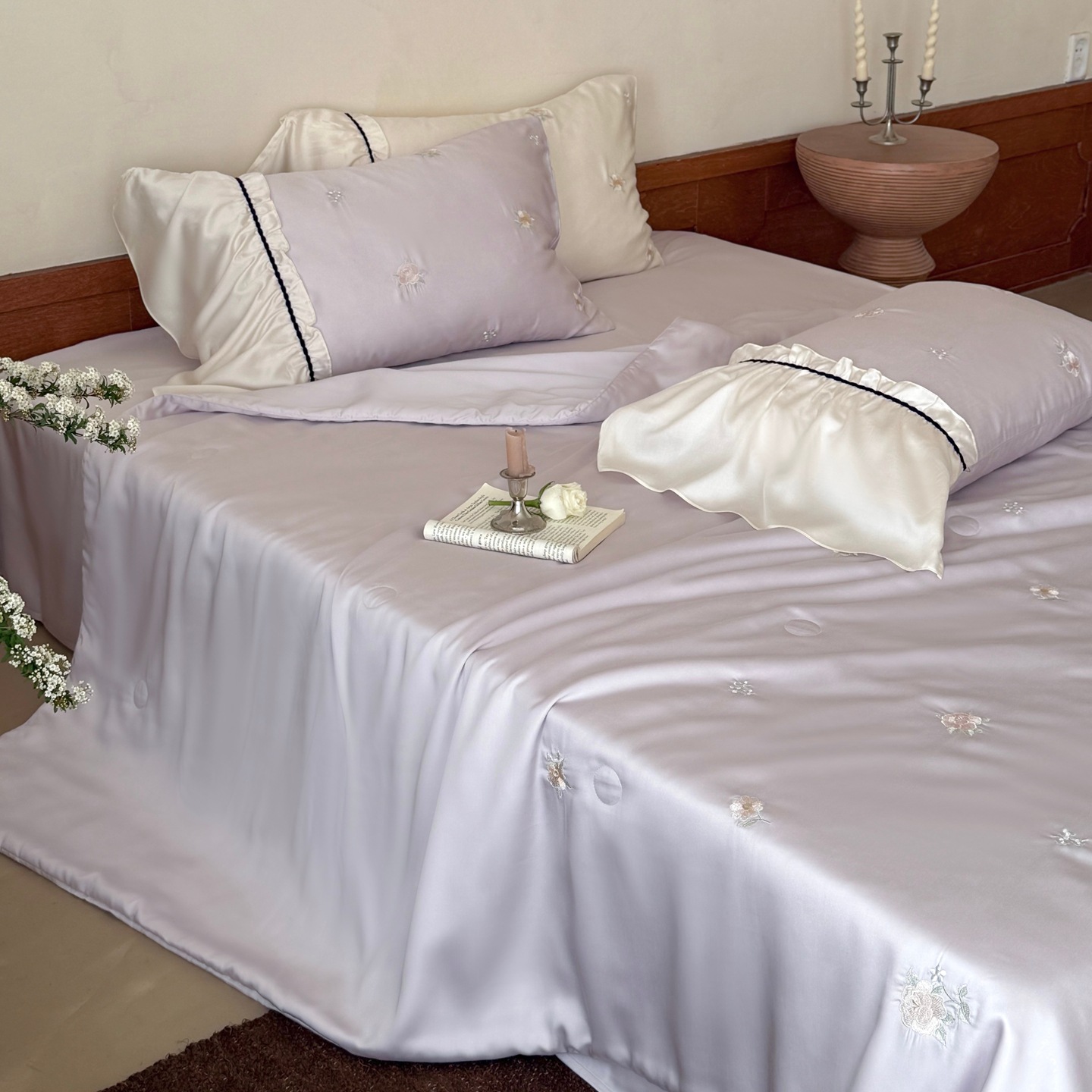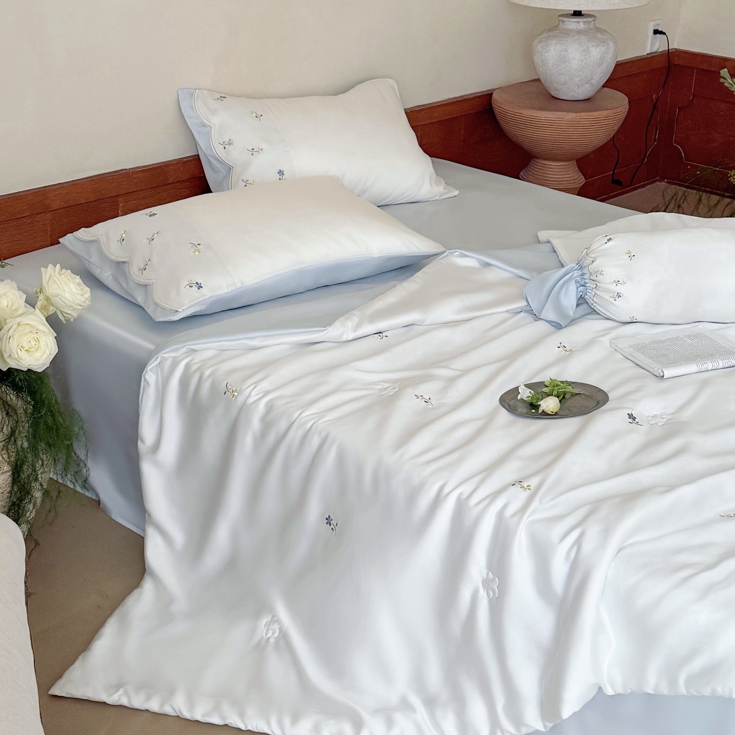 여름 60 양면 텐셀 여름 쿨 퀼트 4 피스 세트 소녀의 하트 꽃 자수 세척 가능한 쿨 에어컨 얇은 이불