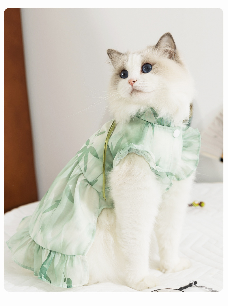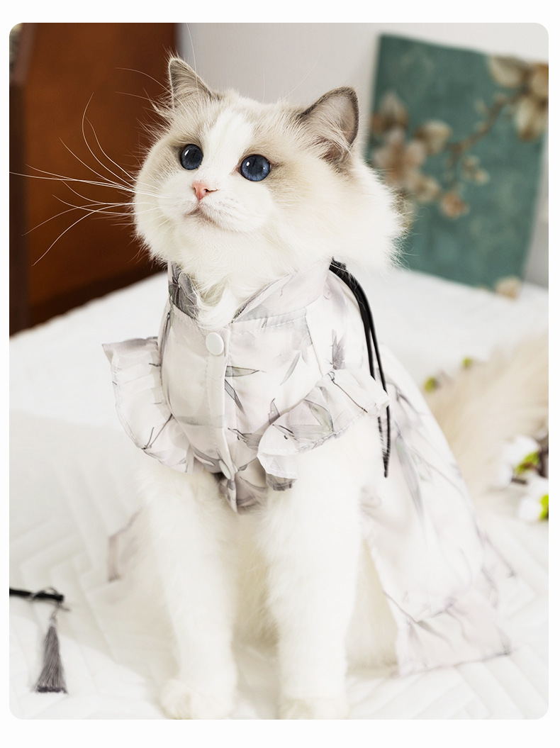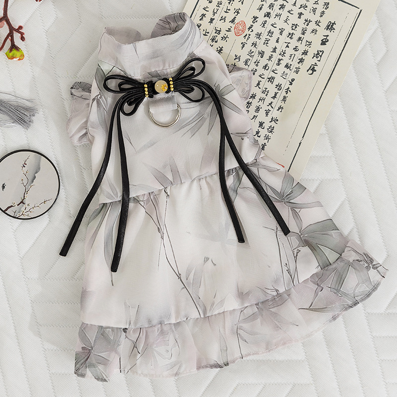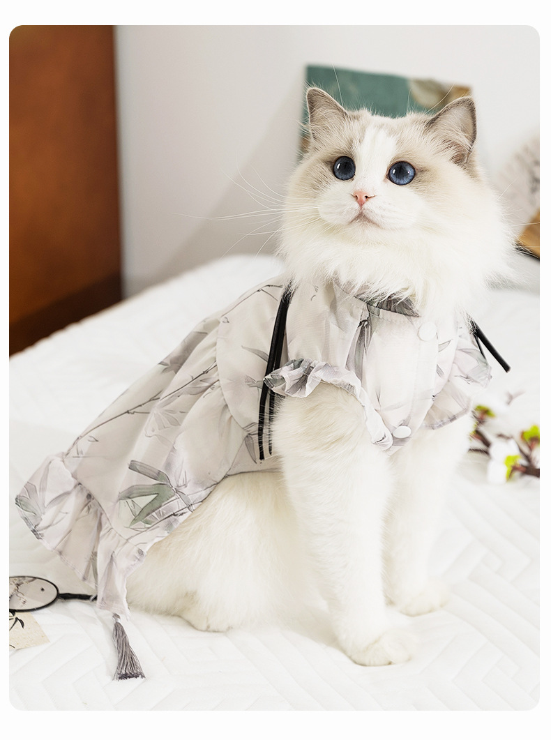 봄과 여름 고양이 옷 잉크 그림 원피스 국가 스타일 고양이 치마 두 다리 얇은 머펫 고양이 옷스토어 가기