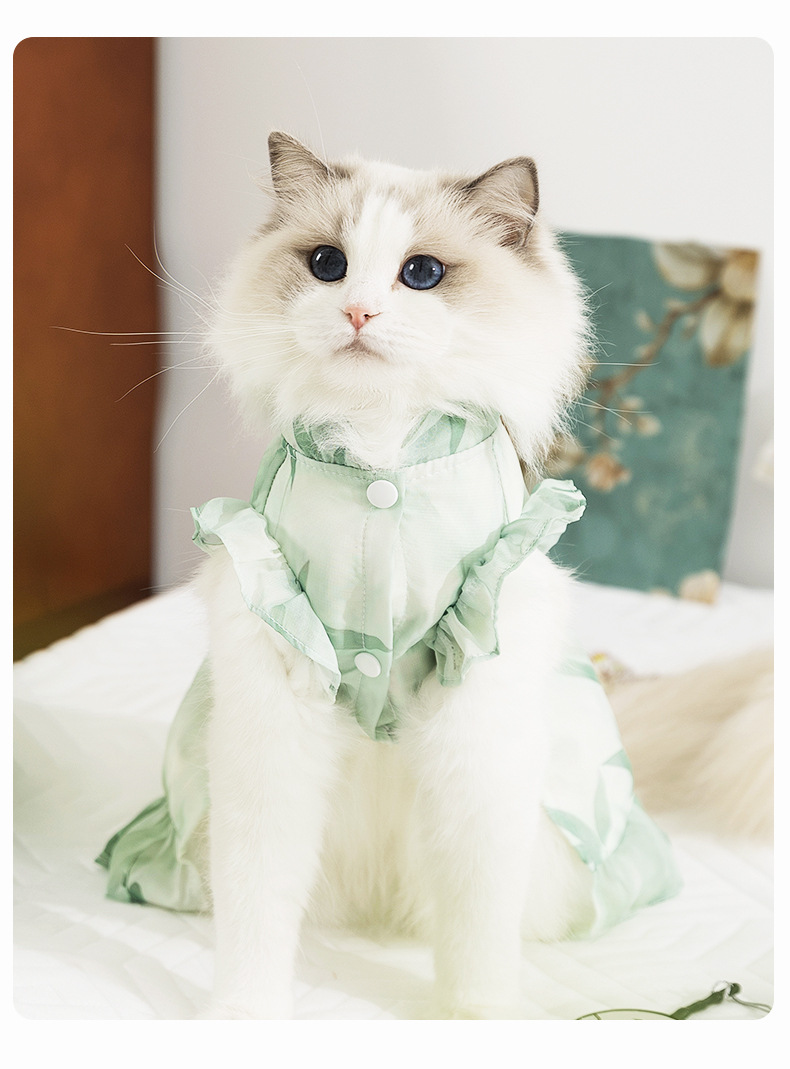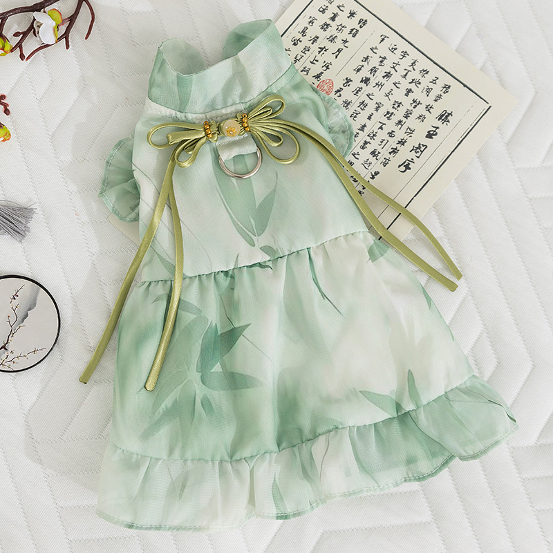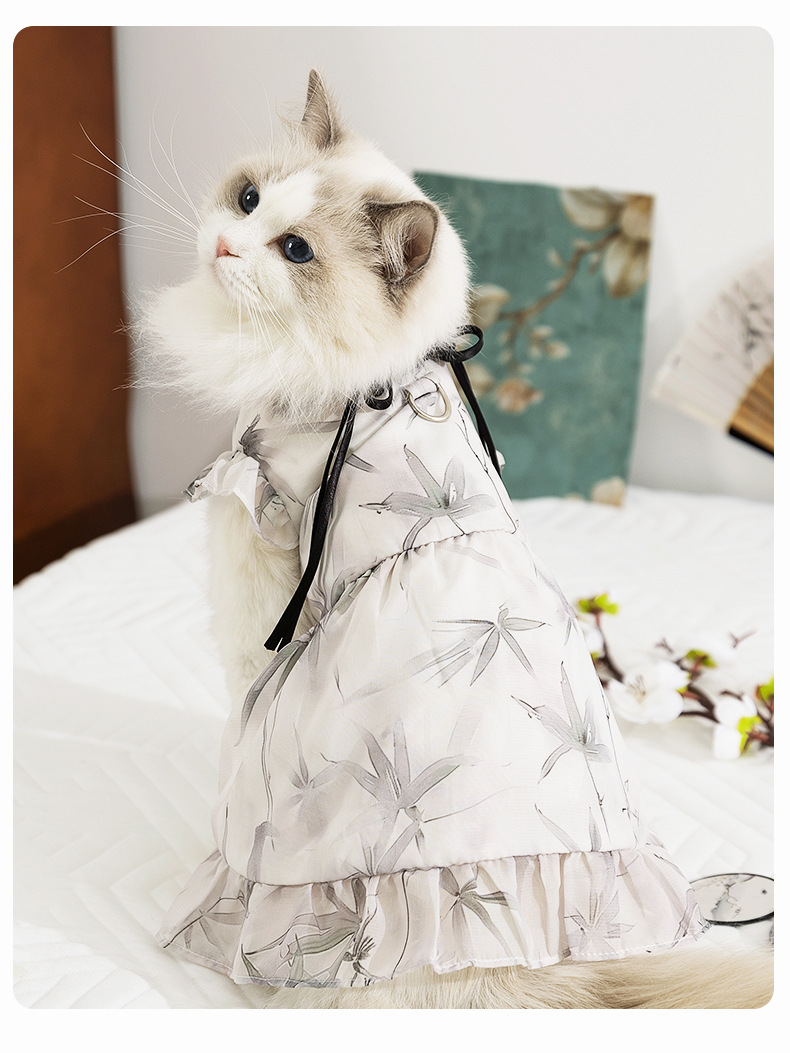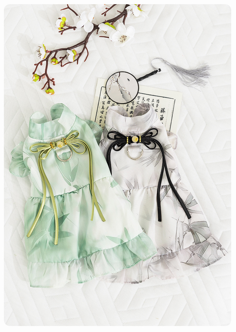 봄과 여름 고양이 옷 잉크 그림 원피스 국가 스타일 고양이 치마 두 다리 얇은 머펫 고양이 옷스토어 가기