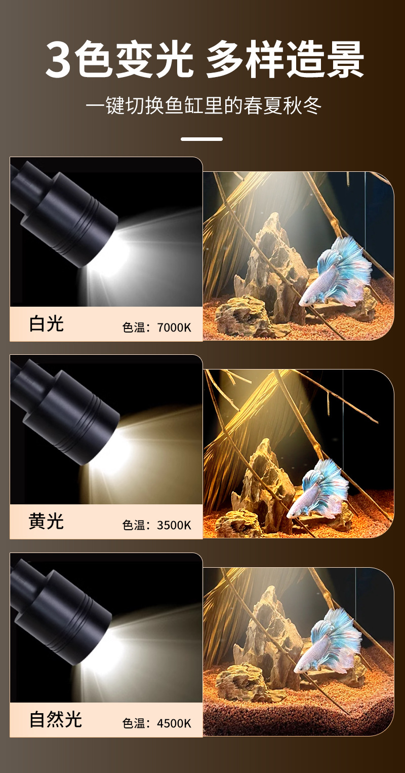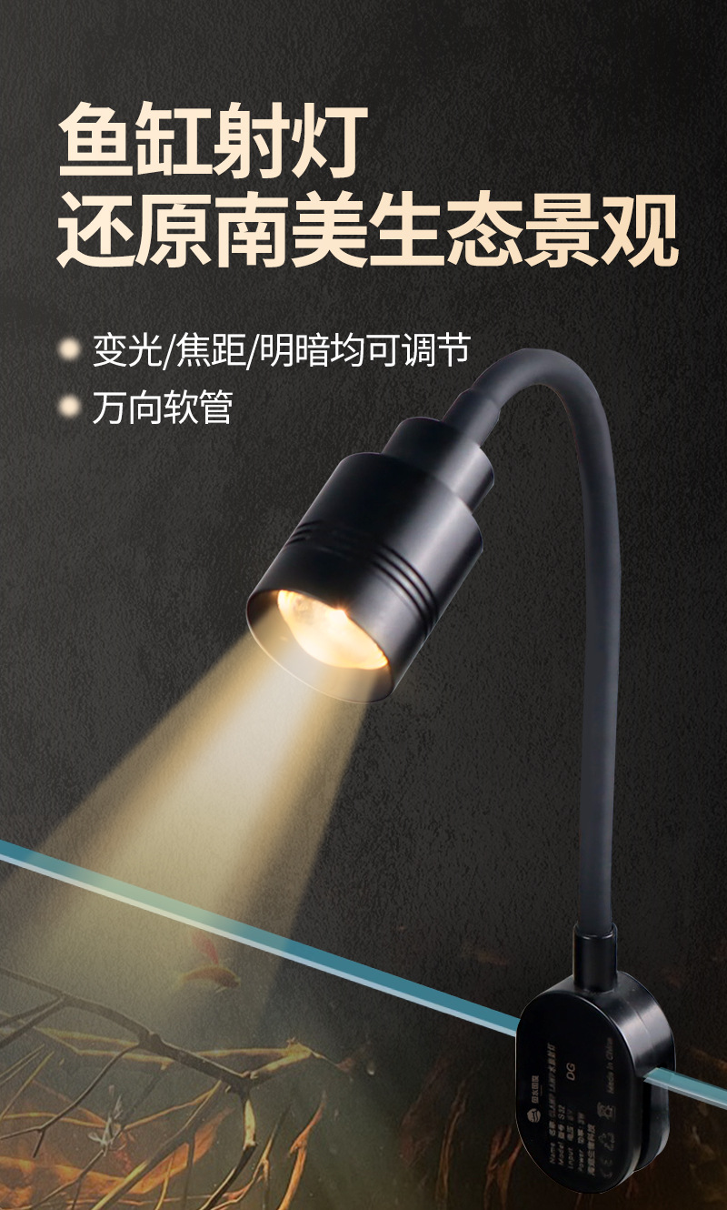 물고기 물 국가 물고기 탱크 스포트라이트 3 색 조정 가능한 초점 줌 물고기 탱크 빛 LED 남미 바람 작은 물고기 탱크 빛스토어 가기