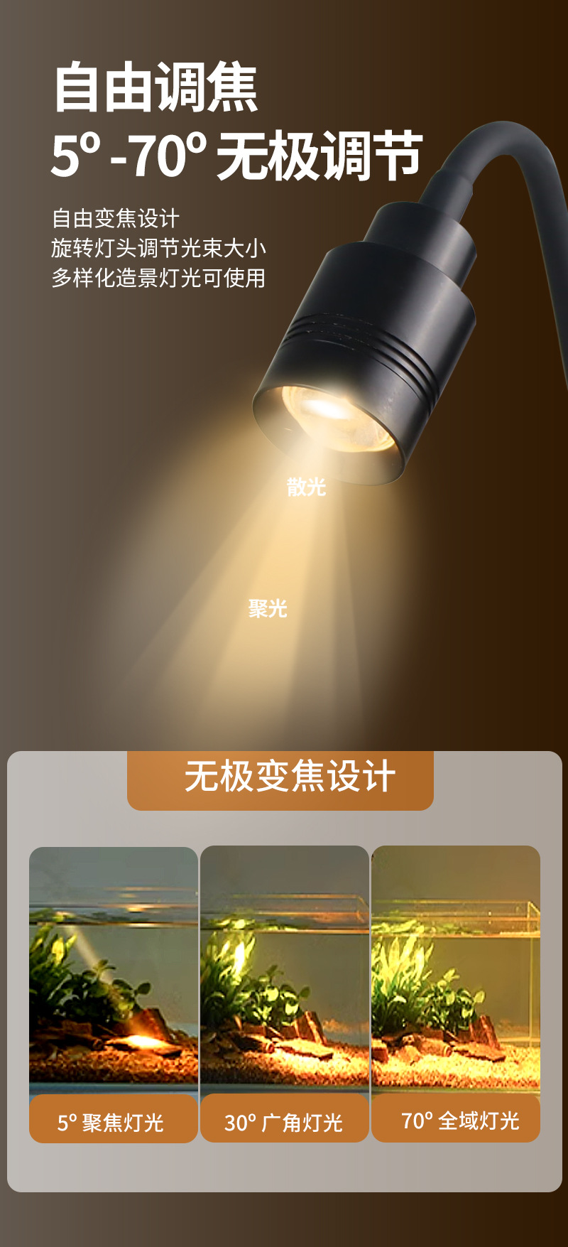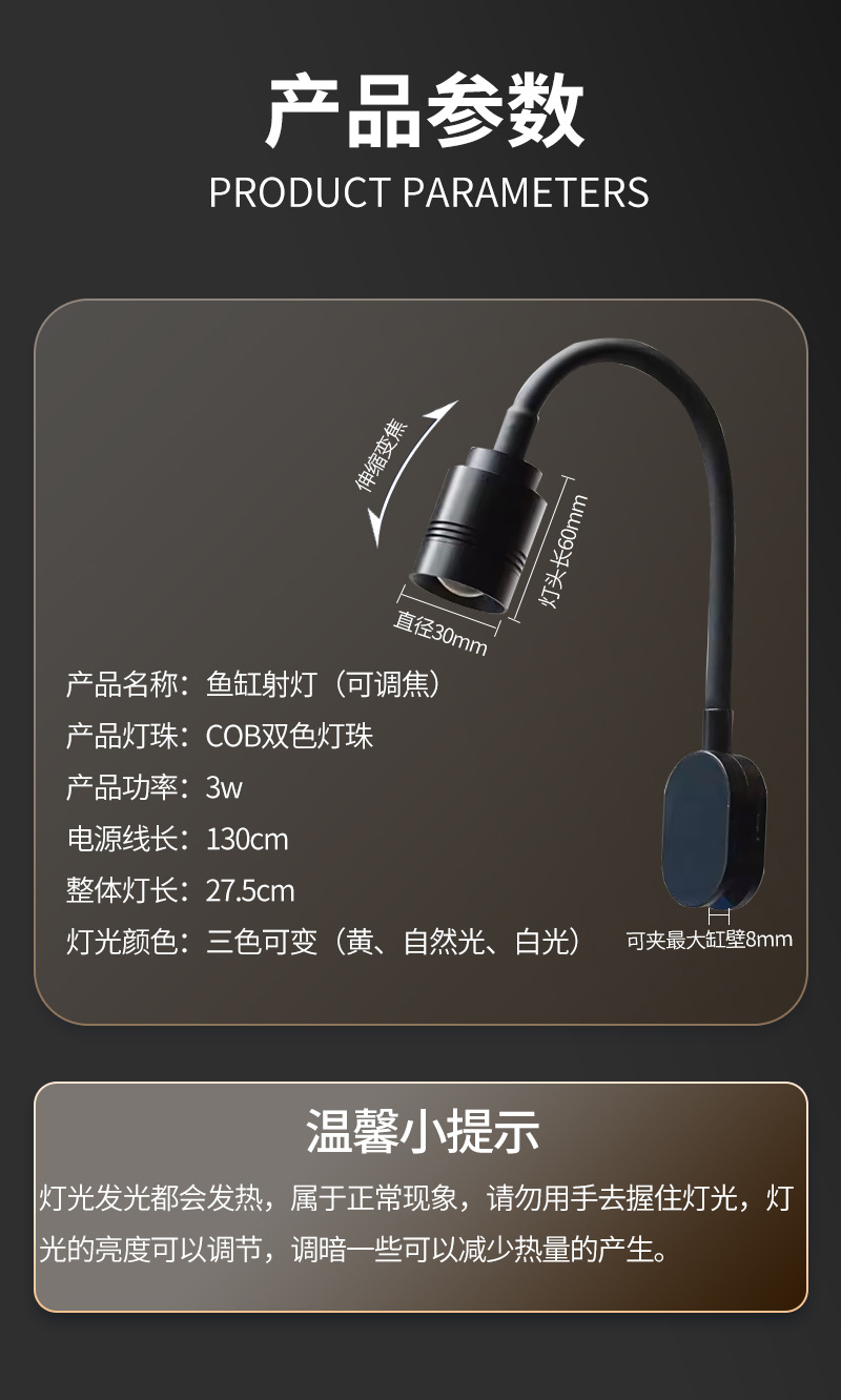 물고기 물 국가 물고기 탱크 스포트라이트 3 색 조정 가능한 초점 줌 물고기 탱크 빛 LED 남미 바람 작은 물고기 탱크 빛