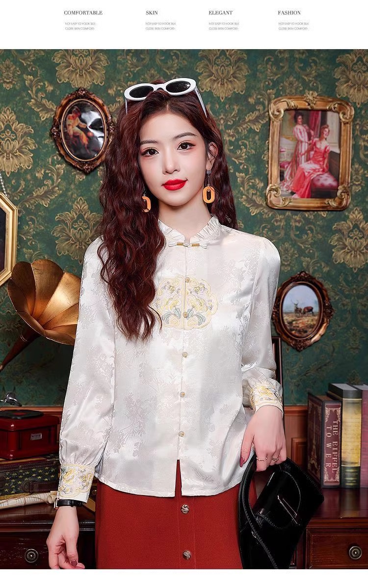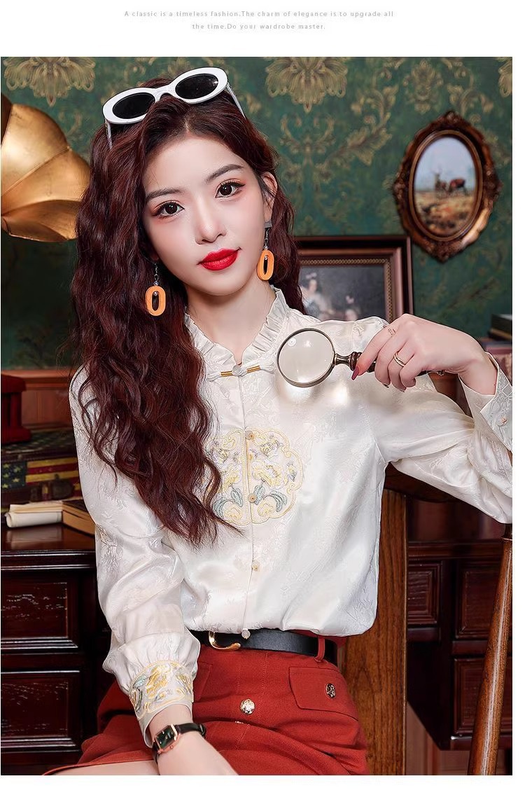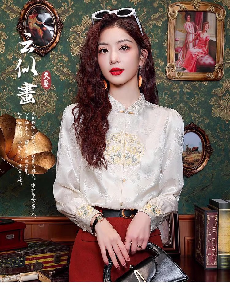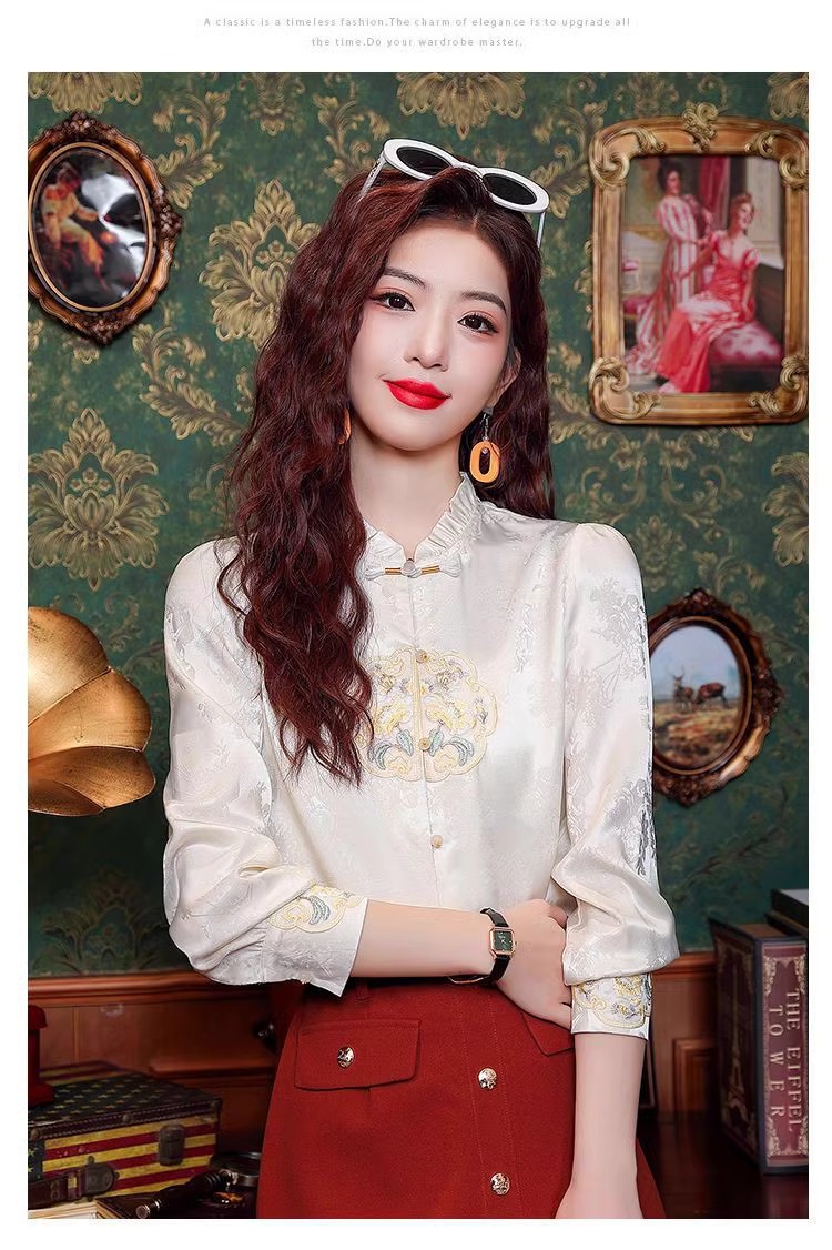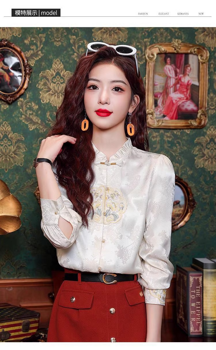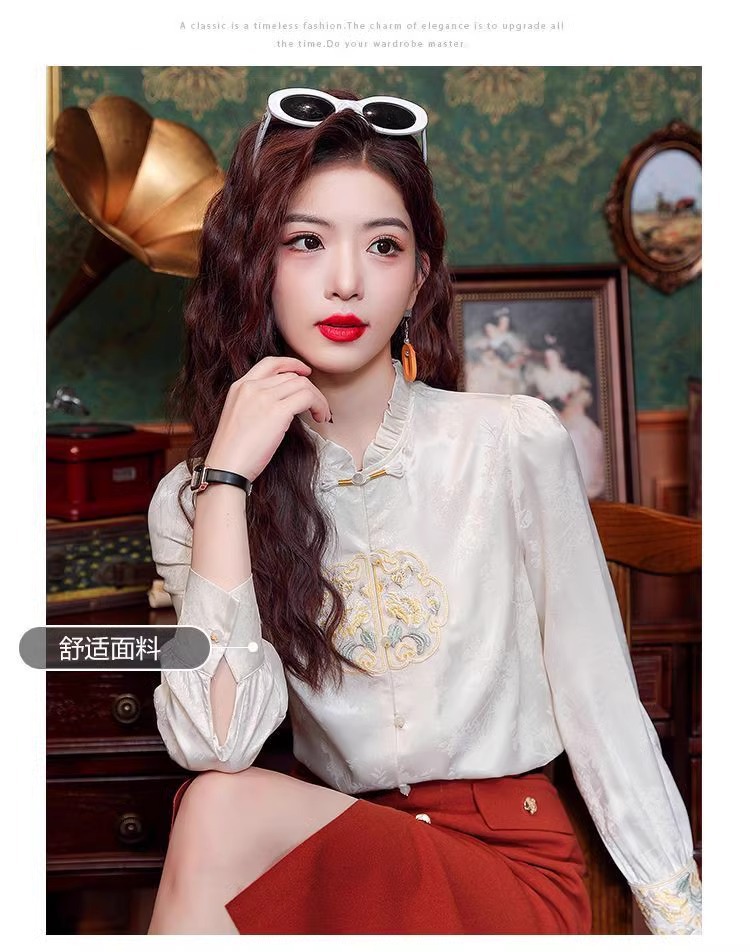 신상 중국풍 셔츠 여성용 가을 신상품 중국풍 레트로 편안하고 통기성 좋은 다용도 나이를 줄여주는 슬림핏 상의 여성용 A3507